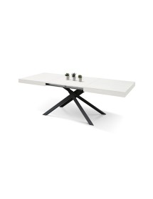 Tavolo allungabile con una linea giovane e dinamica. Le 4 gambe oblique e rastremate alleggeriscono l’impatto visivo e sorreggono il piano composto da materiali solidi e duraturi rendendolo funzionale e pratico all’occorrenza, si trasforma allungandosi automaticamente con un meccanismo a rotazione.