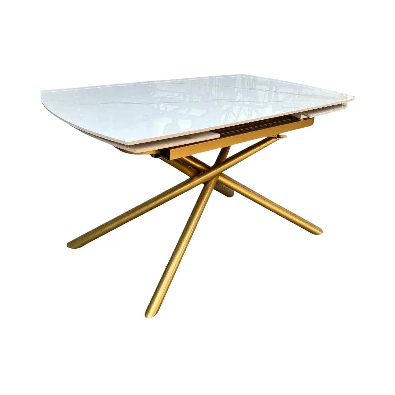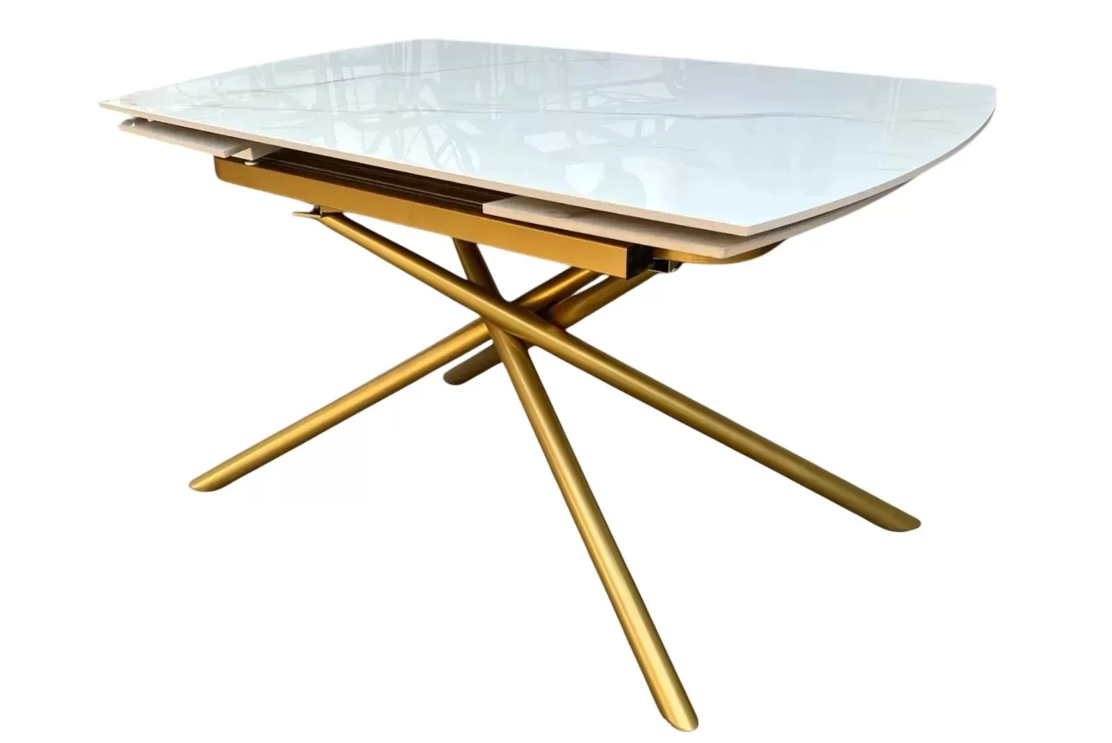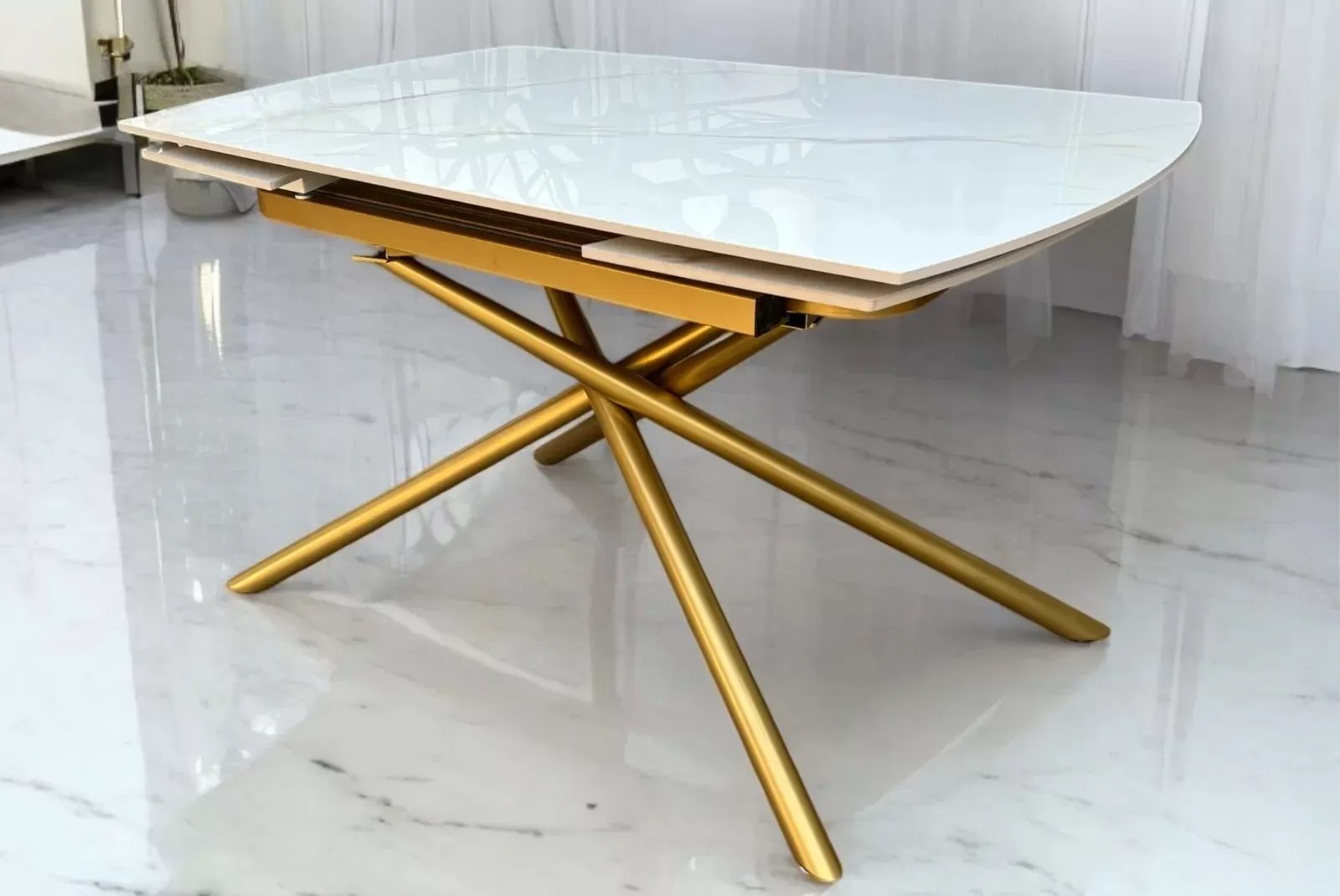 Tavolo moderno allungabile piano ceramica effetto marmo gambe oro 130x90x78