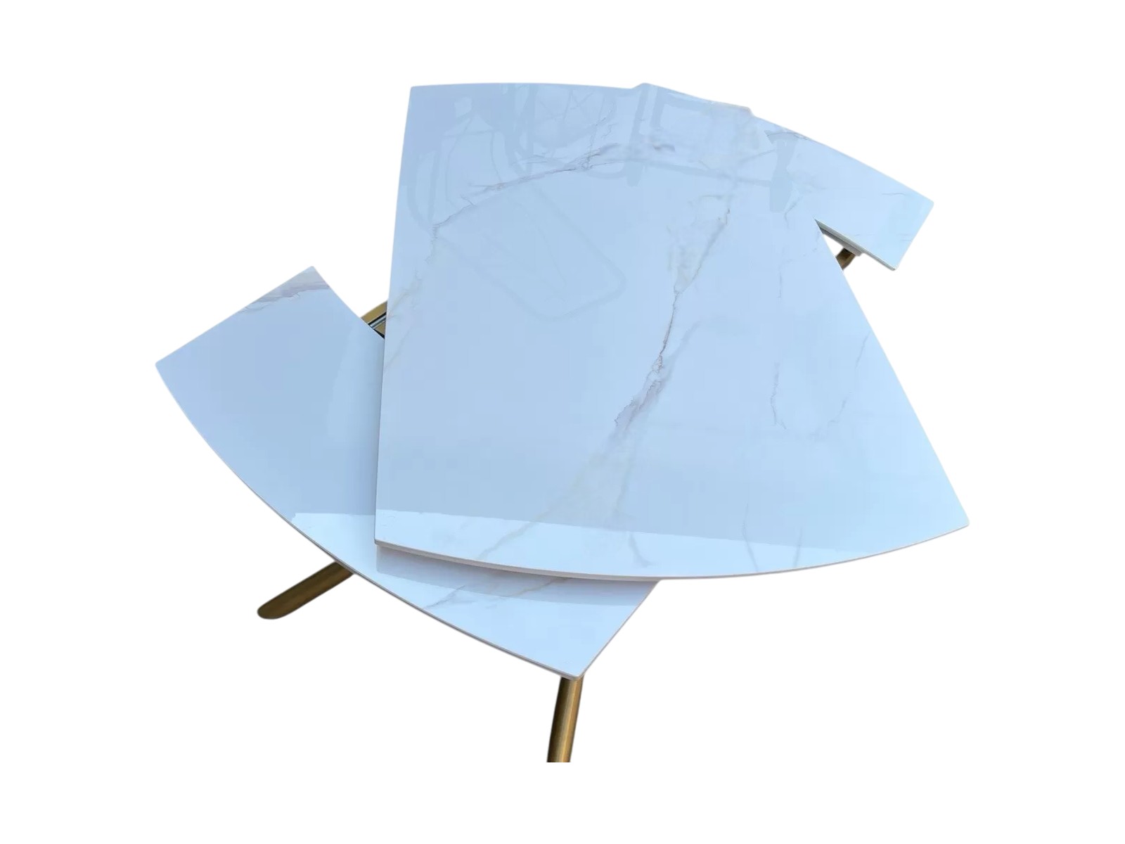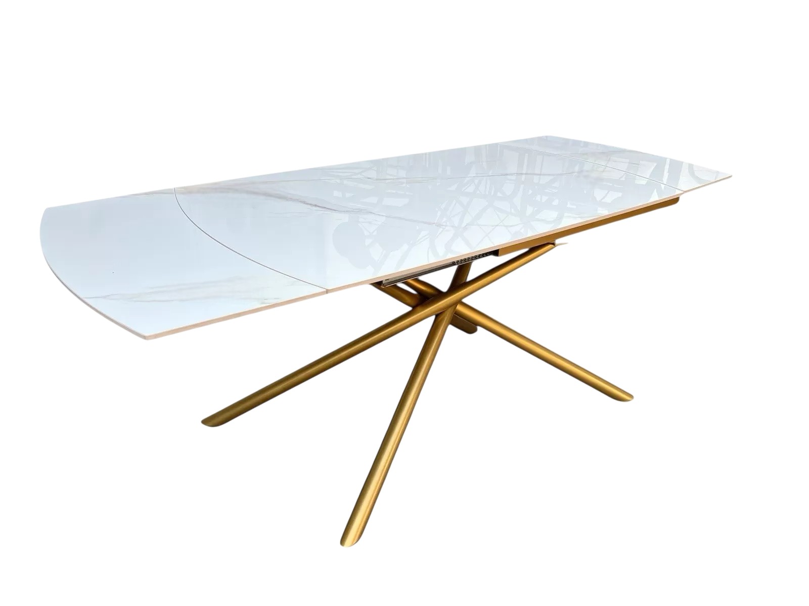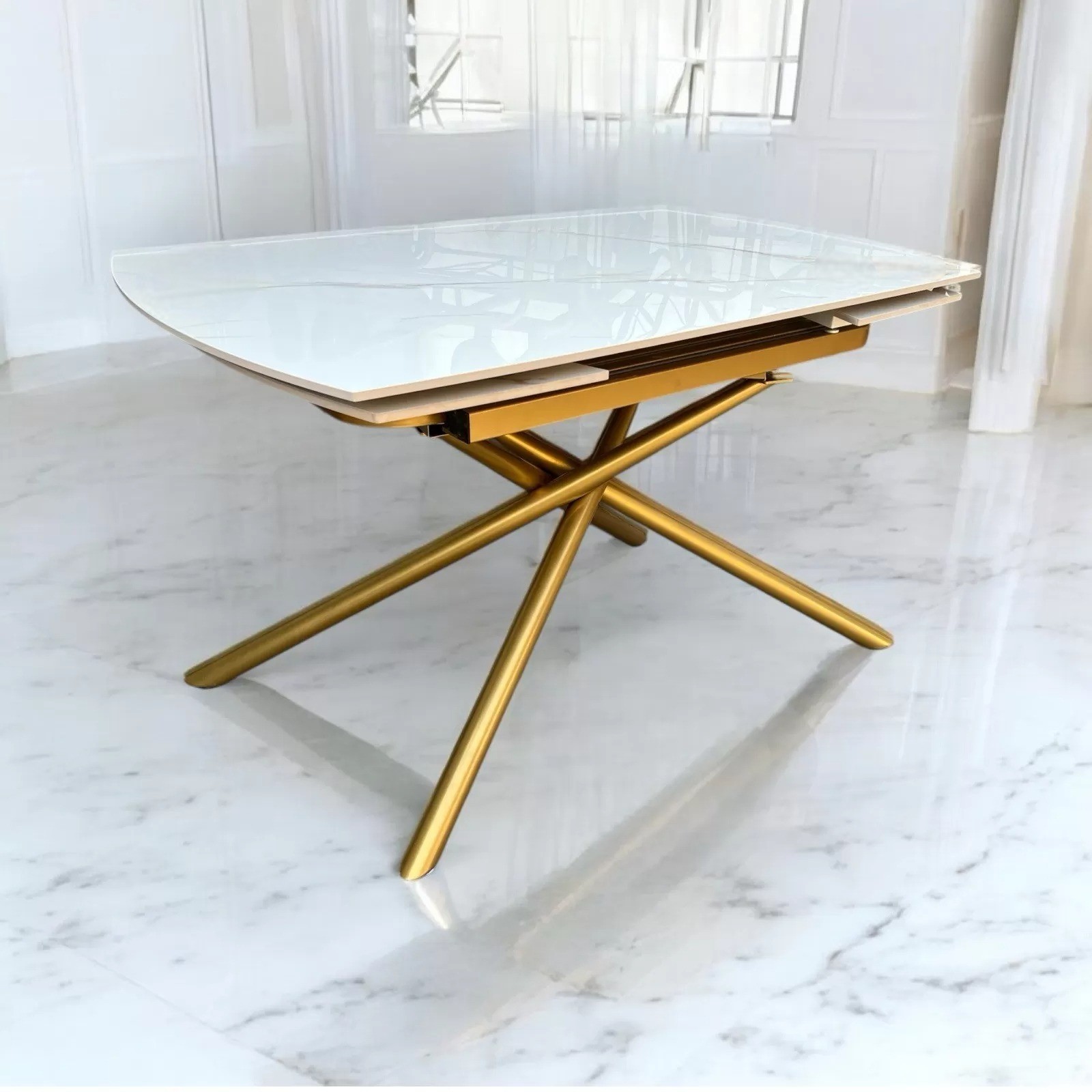 Tavolo moderno allungabile piano ceramica effetto marmo gambe oro 130x90x78
