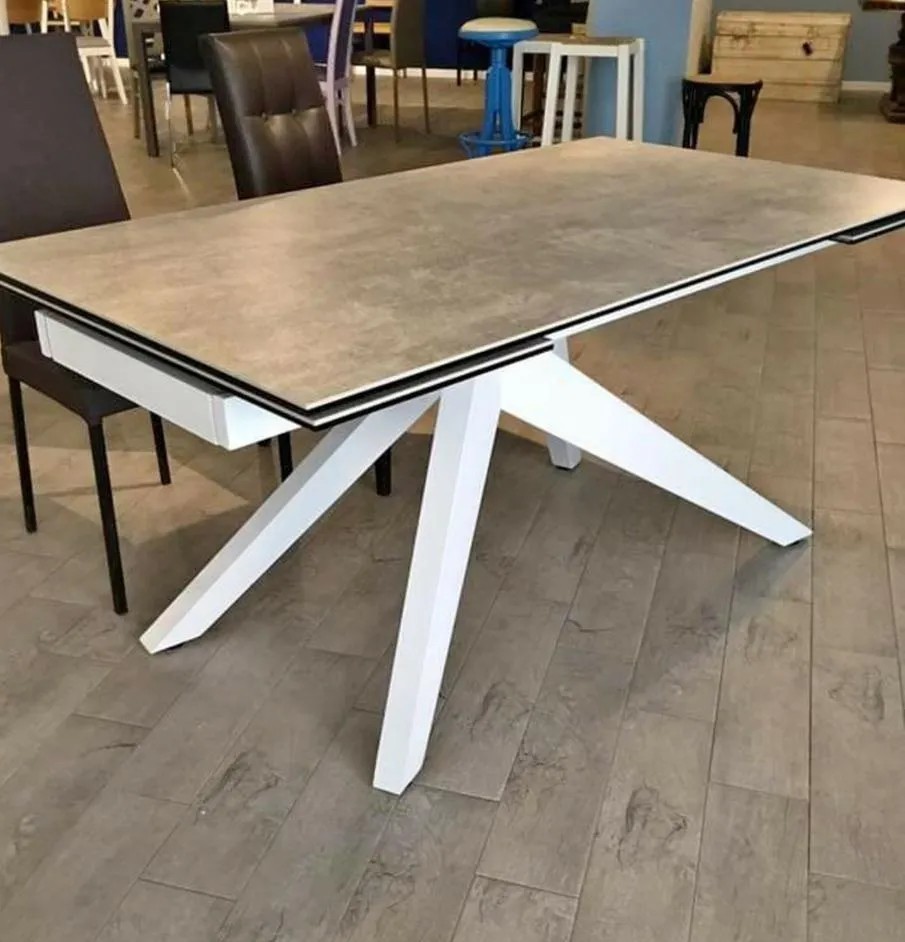 TAVOLO BIG TABLE PIANO VETRO CERAMICA FINITURA BETON MISURA L.160 P.90 H.76(APERTO 240 CM) (01)