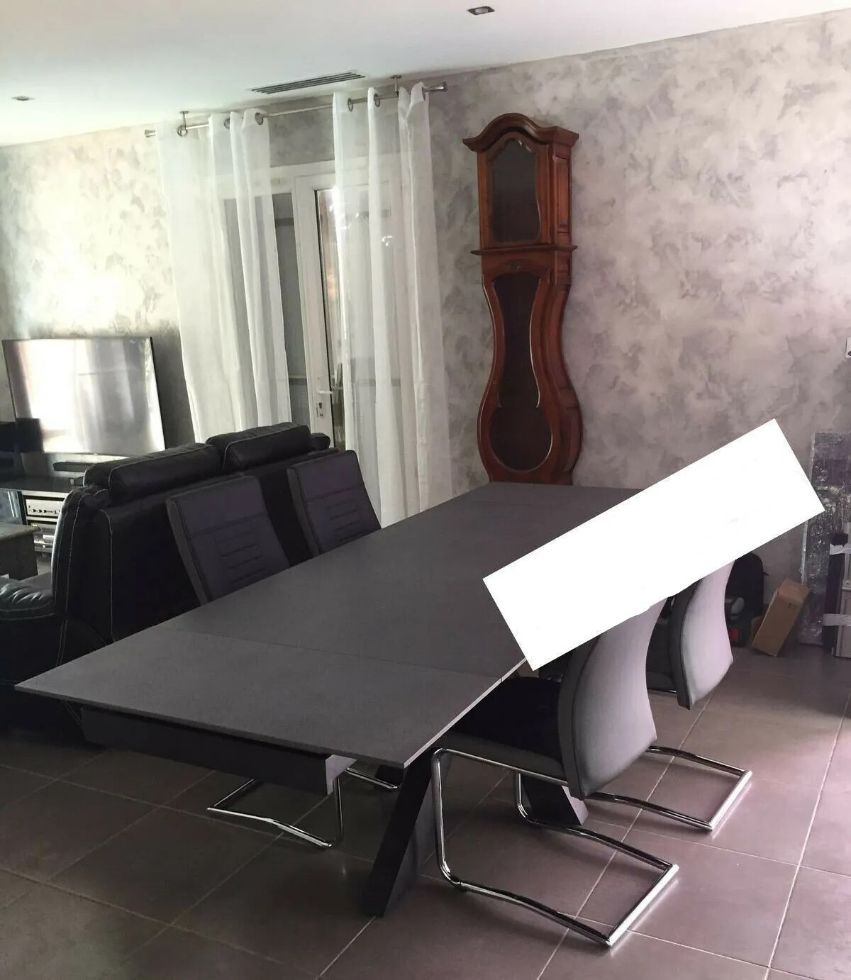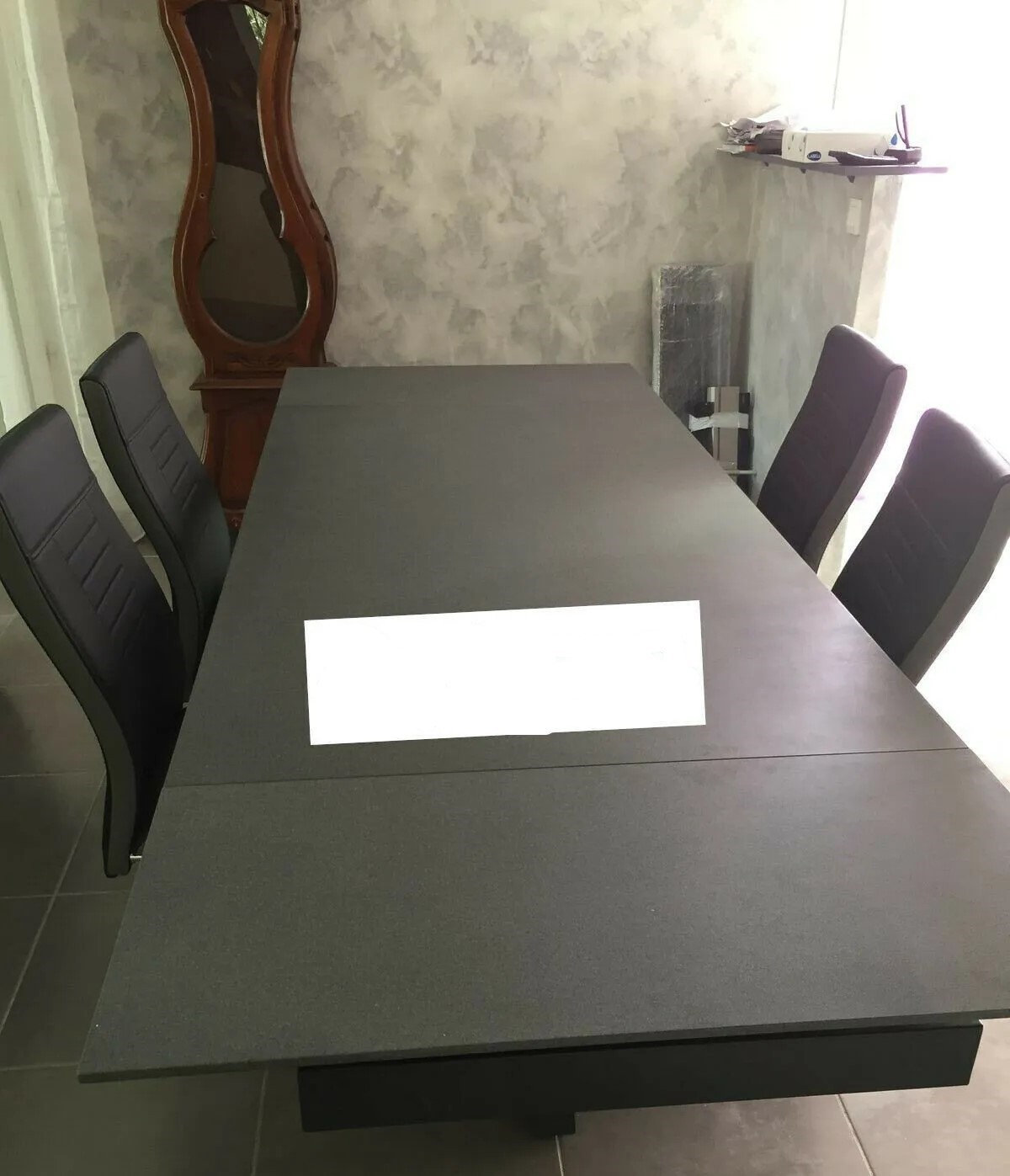 TAVOLO BIG TABLE PIANO VETRO CERAMICA FINITURA PIETRA NERA MISURA L.160 P.90 H.76(APERTO 240 CM)