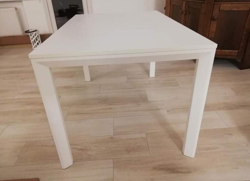 Tavolo in legno bianco frassinato, con una allunga da cm 50.