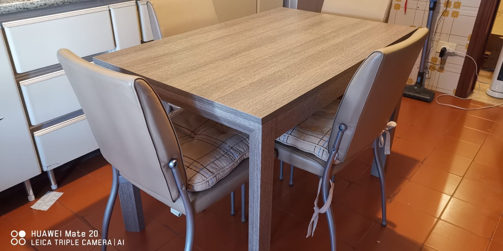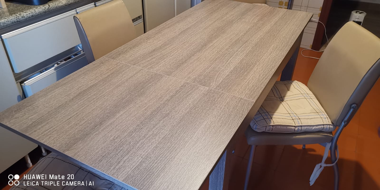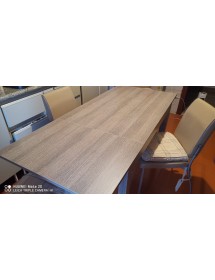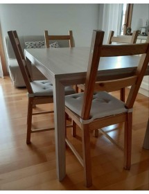 Tavolo in legno colore tortora, con una allunga da cm 50.