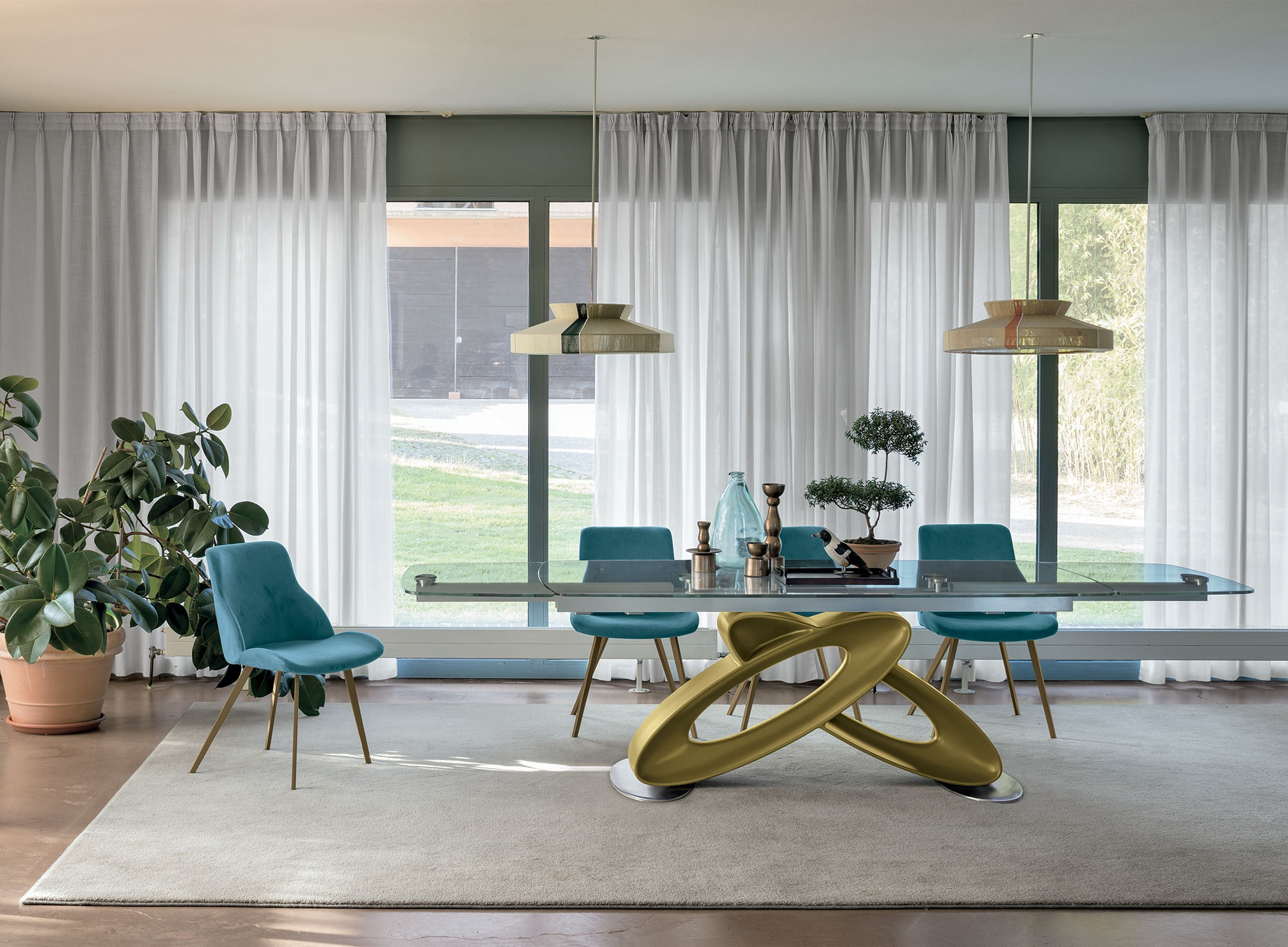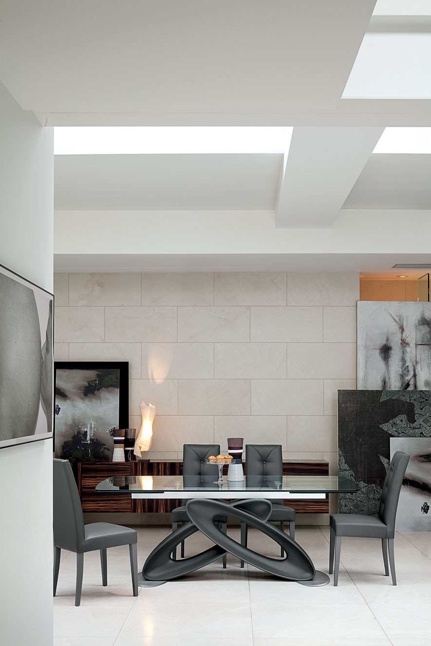 La possibilità di estendere il piano fino a 3 metri lo rende perfetto anche per le grandi occasioni. L’equilibrio tra materiali tecnici e forme artistiche rende Eclipse un tavolo in grado di trasformare ogni ambiente in uno spazio dal carattere unico.