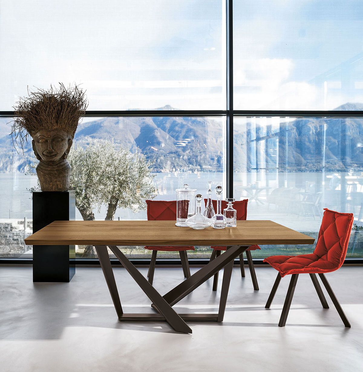 Tavolo Priamo dal design perfetto per essere l'unico protagonista del soggiorno che ti permetterà con una lunghezza massima di 200 cm di ospitare fino ad un massimo di 10/12 persone. Il tavolo è proposto partendo dalla struttura in metallo verniciato o spazzolato con basamento rastrellato , fino ad arrivare al piano ed allunghe in legno donando luminosità e calore nella zona living .