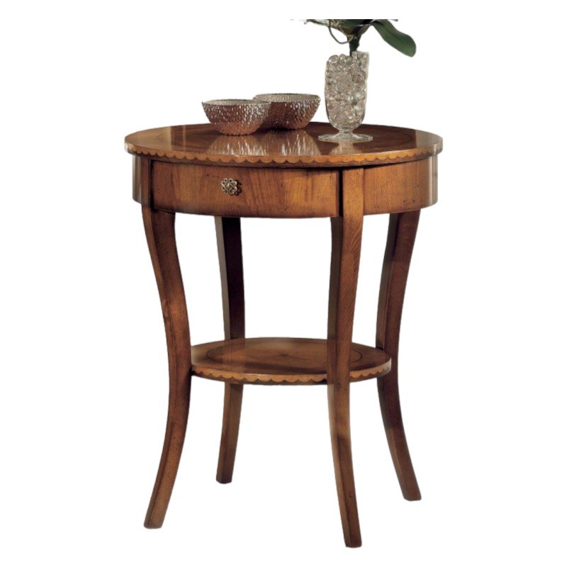 Tavolino rotondo classico 1 cassetto legno bassano 61X61x72