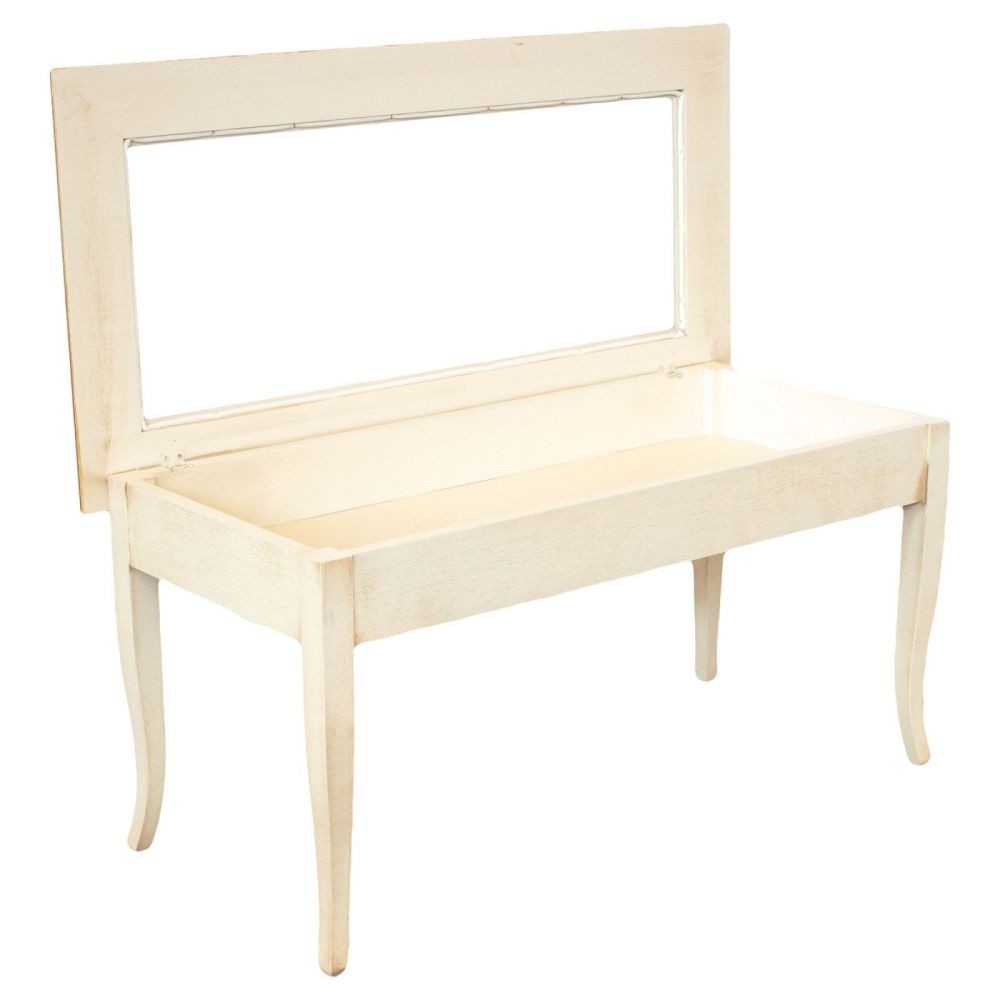 Tavolino bacheca shabby legno avorio anticato filo oro 100x50x47