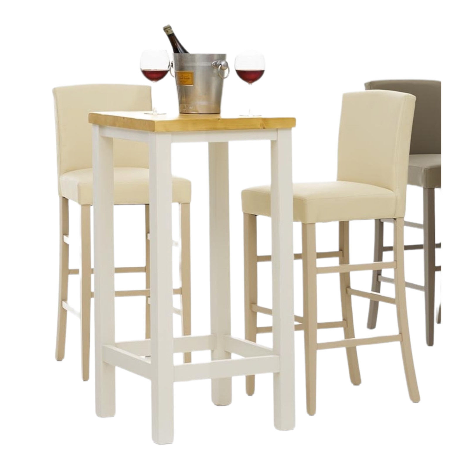 TAVOLINO BAR IN ABETE LACCATO BIANCO CON PIANO TINTA MIELE MISURA L.55 P.55 H.105