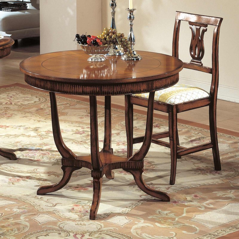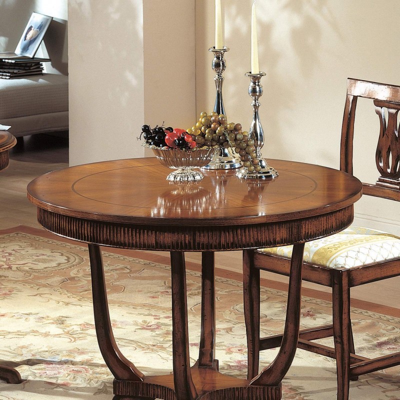 Tavolino rotondo inglese intarsiato legno massello bassano 90X90x75