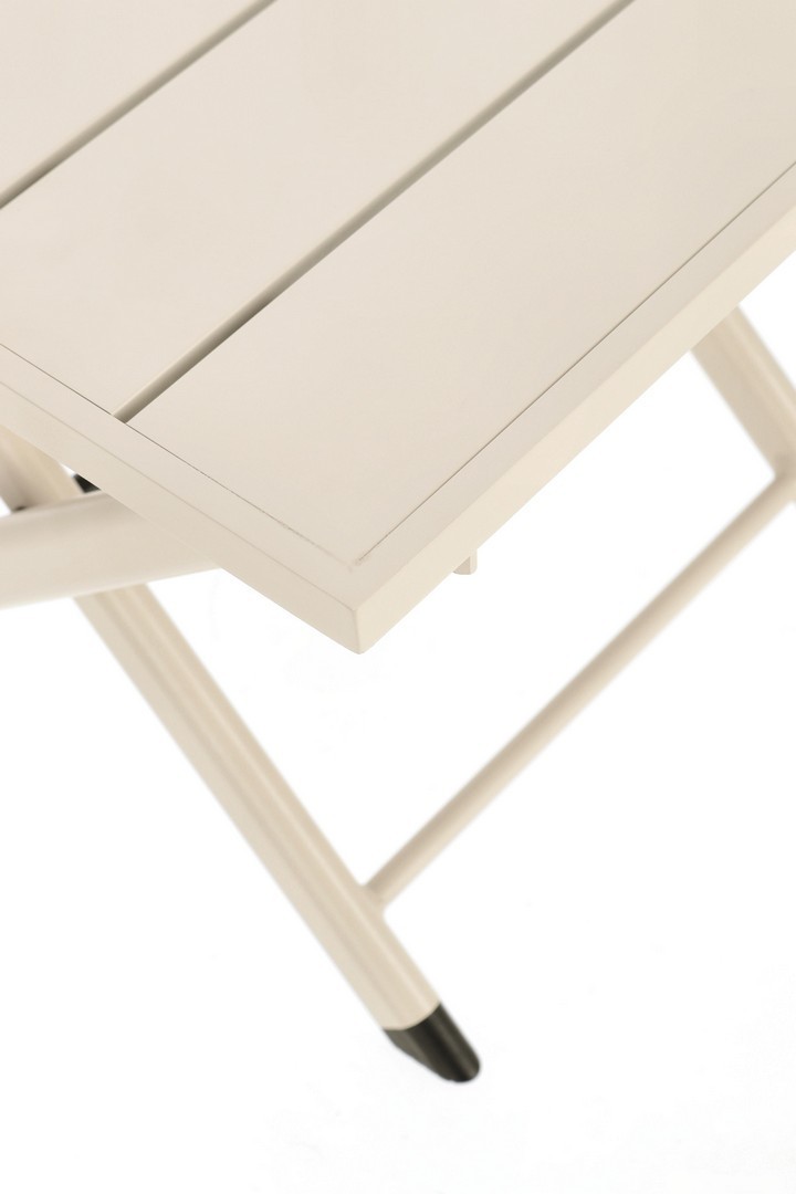STRUTTURA IN ALLUMINIO, VERNICIATO A POLVERE (POLIESTERE). FERRAMENTA IN ACCIAIO INOSSIDABILE. PIEGHEVOLE.