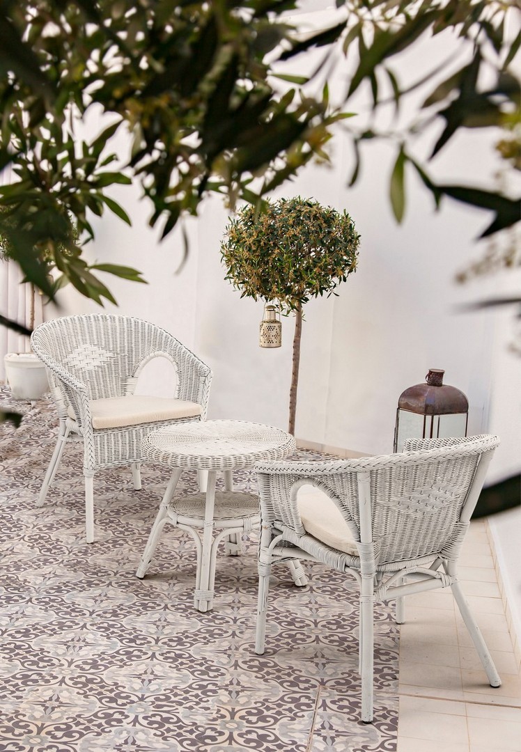 STRUTTURA IN RATTAN, INTRECCIO IN MIDOLLINO. RIFINITURA CON VERNICE MELAMINICA. SI RACCOMANDA DI NON ESPORRE ALLA LUCE DIRETTA DEL SOLE ED ALLE INTEMPERIE. IMBALLO SENZA CARTONE.