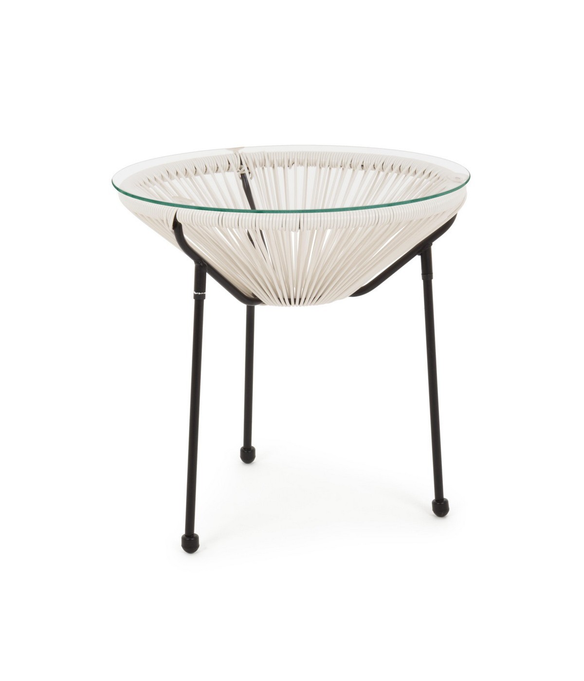 STRUTTURA IN ACCIAIO, TRATTATA PER L'ESTERNO TRAMITE SABBIATURA E VERNICIATA A POLVERE EPOSSIDICA. CORDE IN FIBRA SINTETICA (PE 4mm). PIANO IN VETRO TEMPERATO (5mm). GAMBE DA ASSEMBLARE.