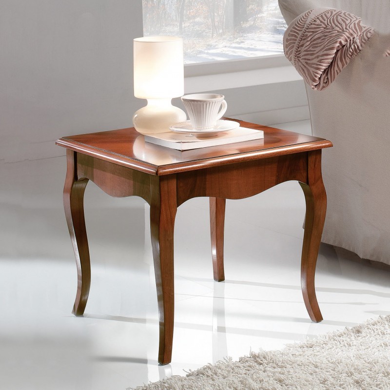 TAVOLINO IN LEGNO MASSELLO TINTA NOCE INTARSIATO MISURA L.50 P.50 H.45