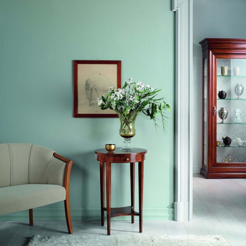 TAVOLINO IN LEGNO TONDO 1 CASSETTO CON RIPIANO MISURA DIAMETRO 50 H.75289,00 € 722,50 € -60% -