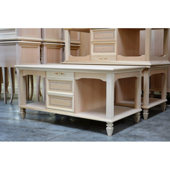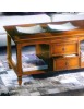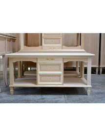 Tavolino rettangolare con due cassetti con filettature colorate e due vani a giorno. Piedini a spillo strozzati nella parte alta. Questo semplice mobile da complemento in stile classico permette di arredare con gusto e raffinatezza le case più eleganti.. La linea del mobile è una collezione di mobili artigiani realizzati esclusivamente in Italia. La cura dei particolari e l' impatto estetico rendono questa linea di mobili unica e esclusiva nel suo genere .