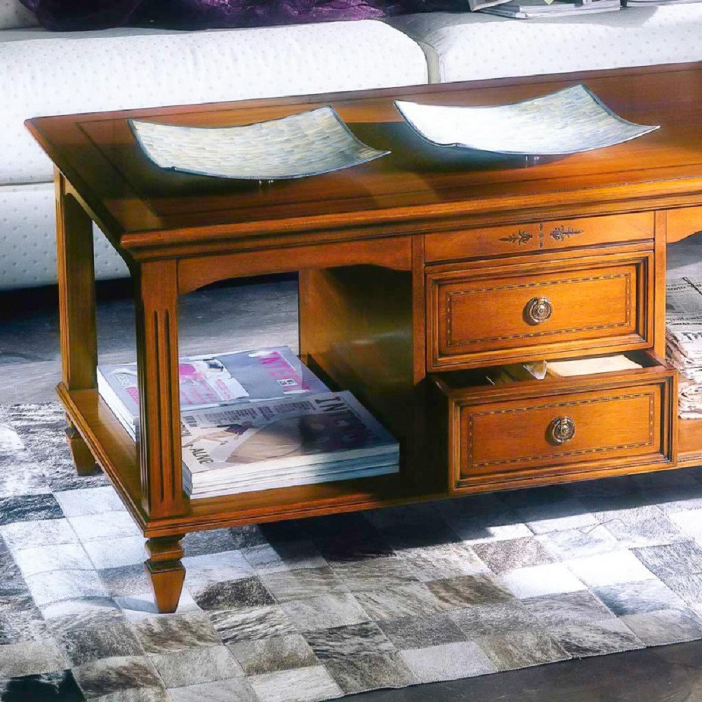 TAVOLINO CLASSICO DA SALOTTO IN LEGNO 2 CASSETTI FINITURA BASSANO L.115 P.65 H.55