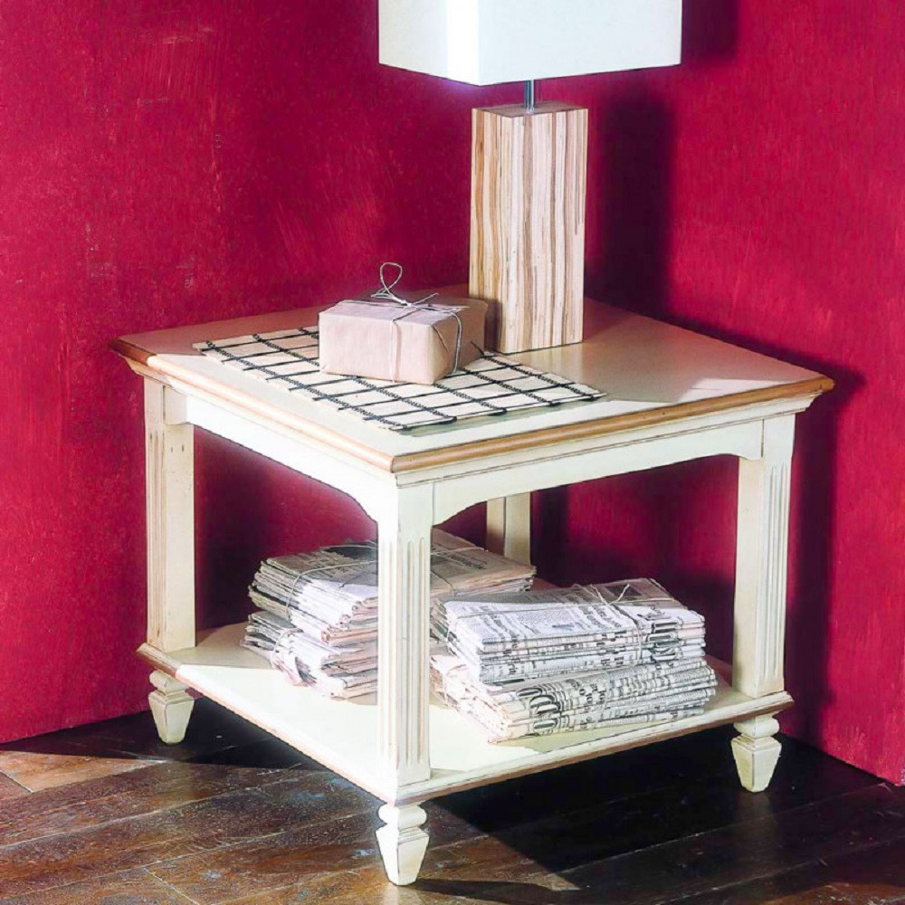 TAVOLINO QUADRATO CLASSICO IN LEGNO BICOLORE L.65 P.65 H.55