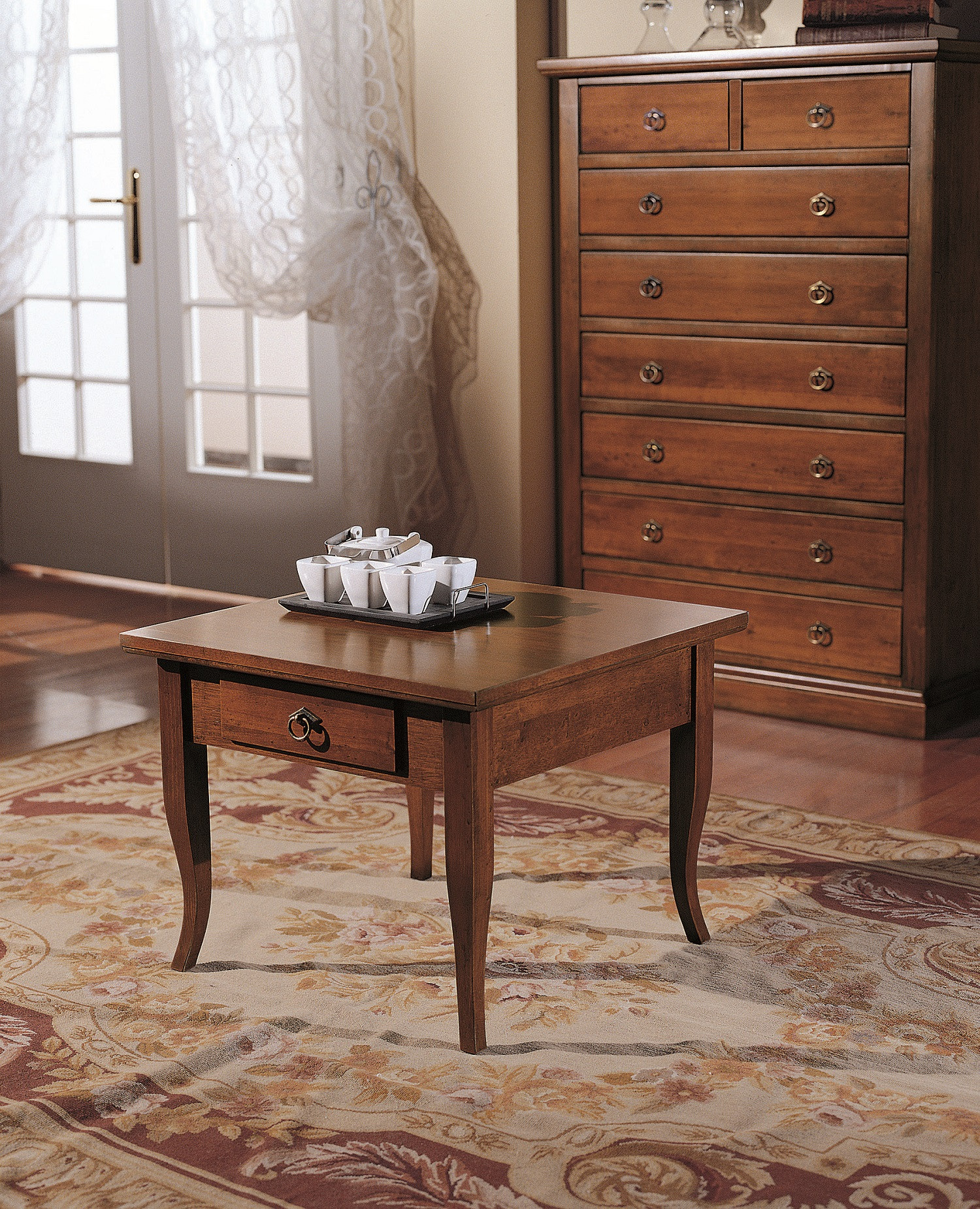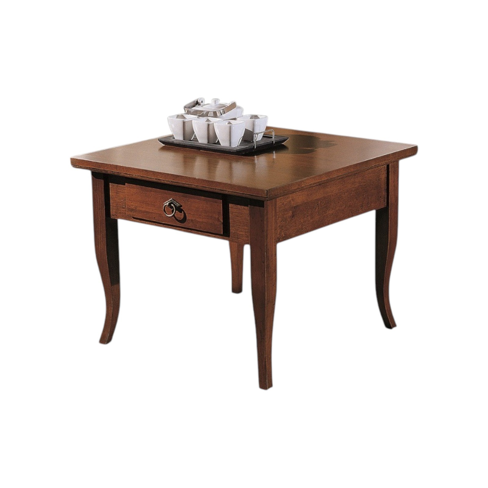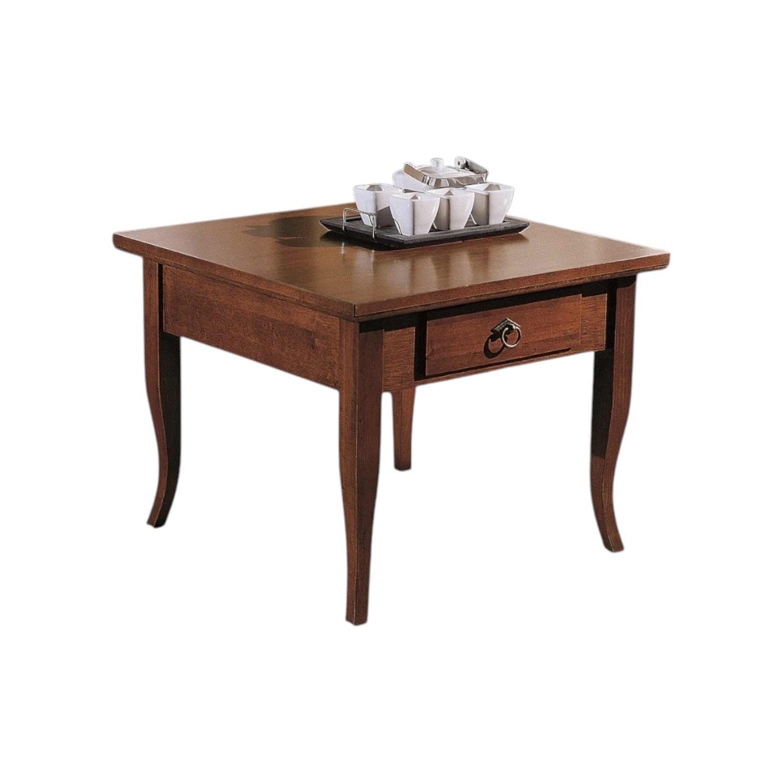 TAVOLINO ARTE POVERA 1 CASSETTO IN LEGNO TINTA NOCE L.57 P.57 H.52