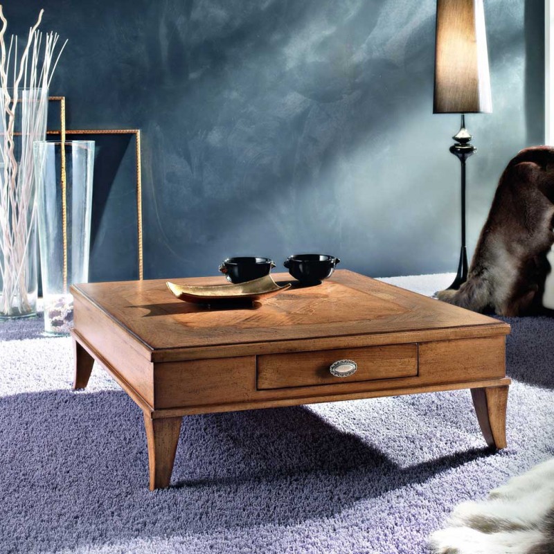 TAVOLINO QUADRATO 1 CASSETTO LEGNO CLASSICO 90X90x33