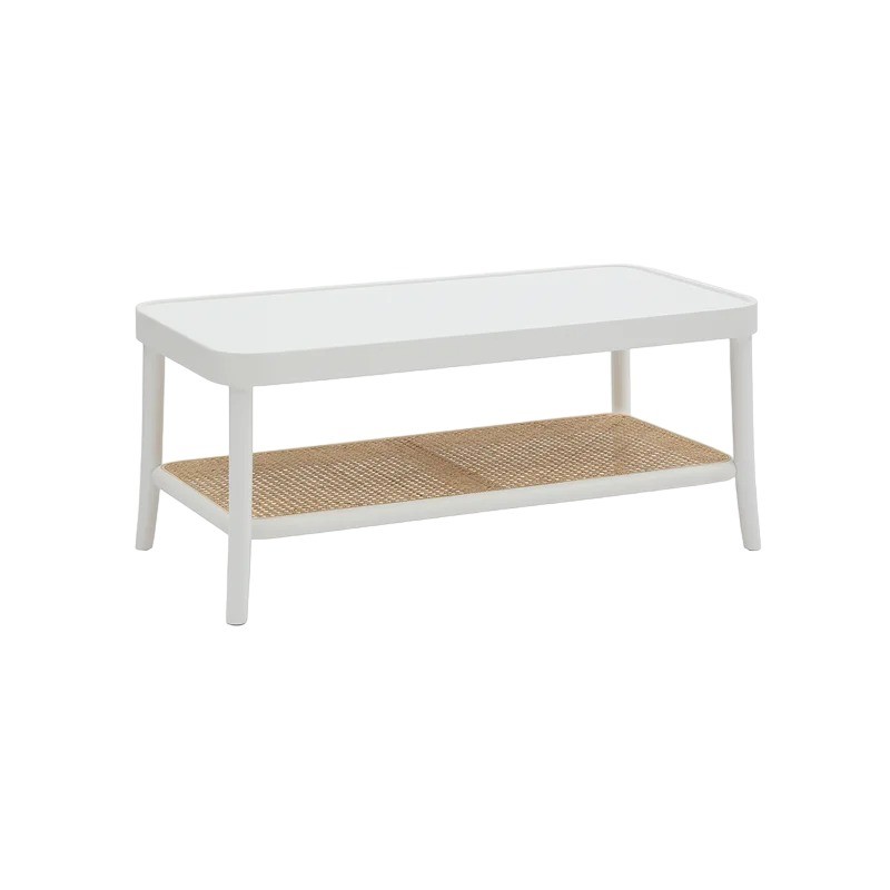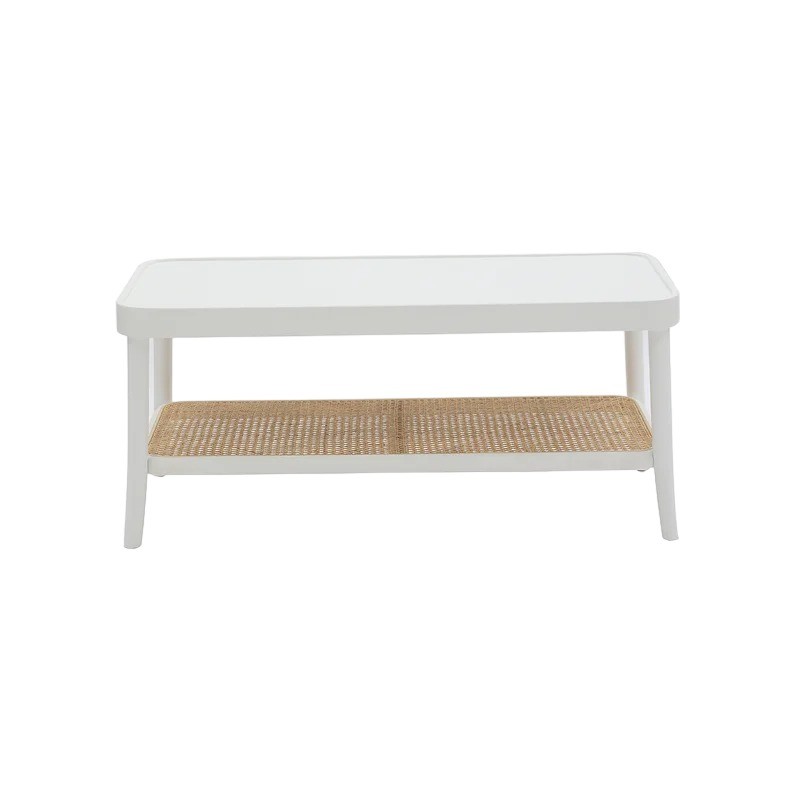 Tavolino contemporaneo legno paglia bianco shabby 100X50X43