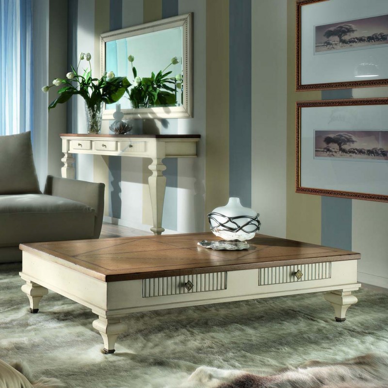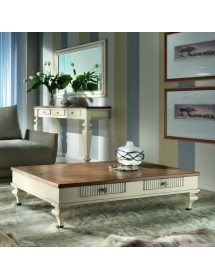 Tavolino classico rettangolare 2 cassetti legno shabby 130X70x33