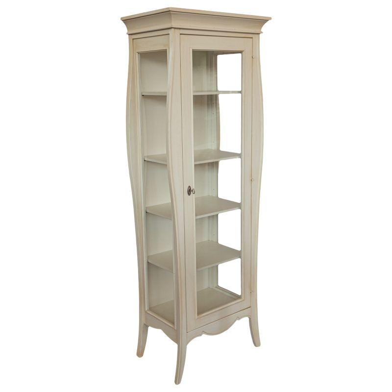 Vetrina sagomata 1 porta legno shabby bianco anticato 71x48x204 (3095)