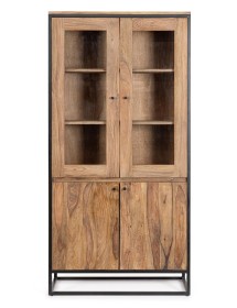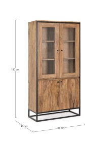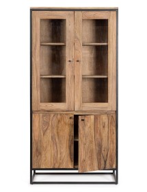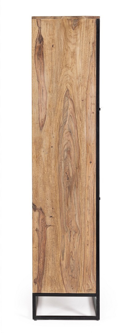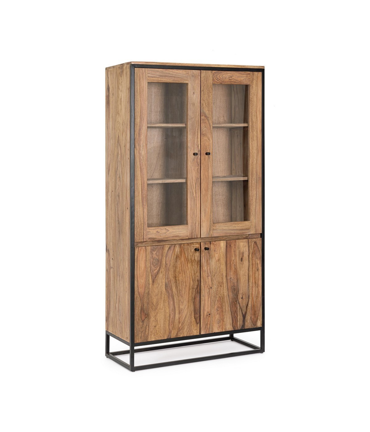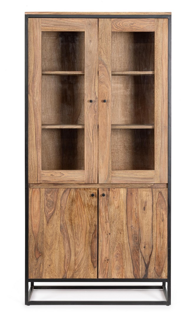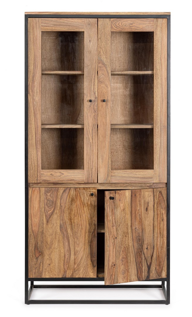 STRUTTURA IN LEGNO SHEESHAM E ACCIAIO VERNICIATO A POLVERE EPOSSIDICA, SCHIENALE IN COMPENSATO. FINITURA ACRILICA PROTETTIVA. MANIGLIE IN ACCIAIO. VANO PORTA COMPRENSIVO DI MENSOLA.