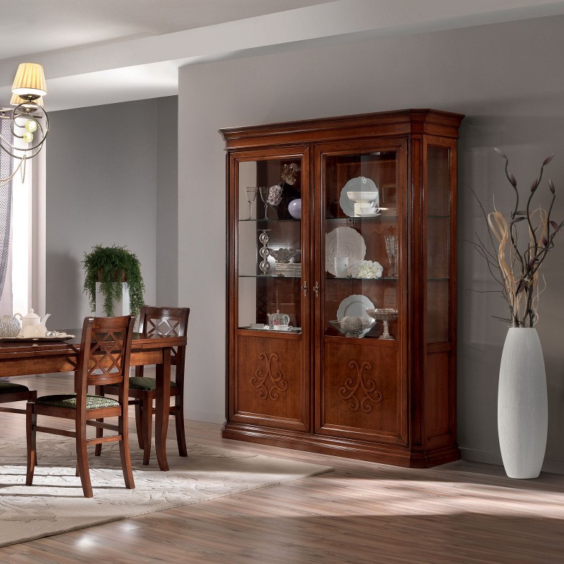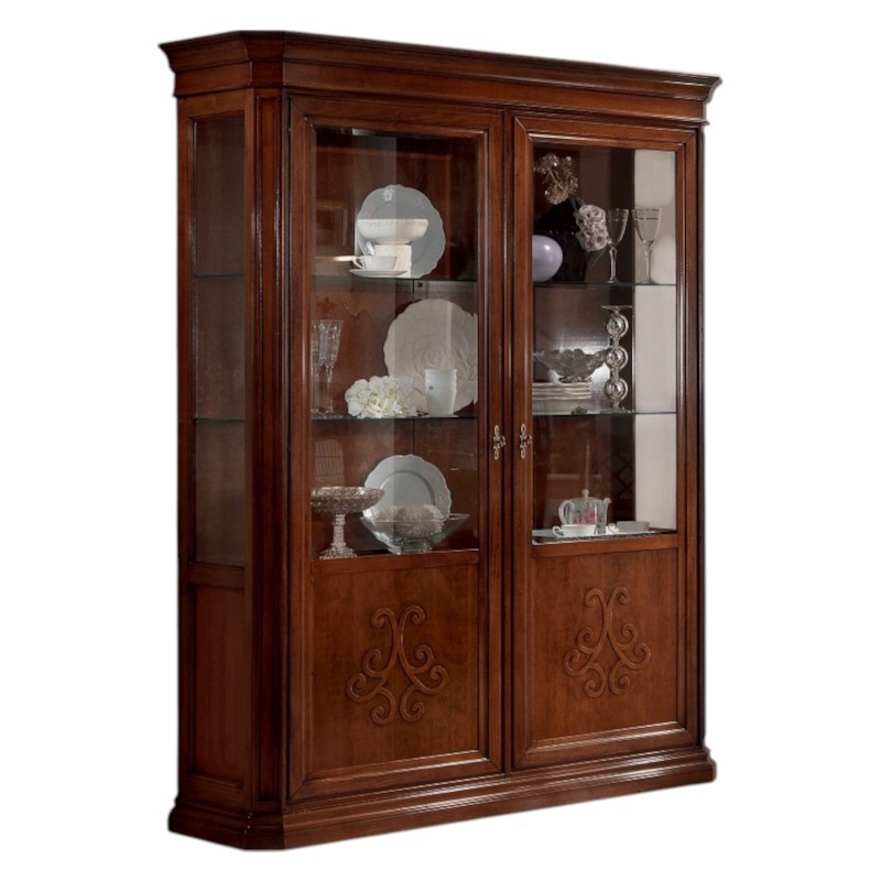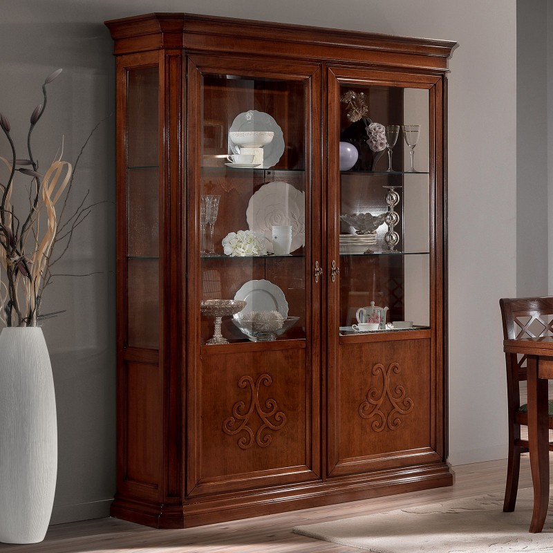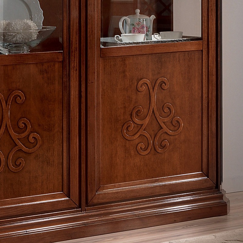 Vetrina classica 2 porte intarsio legno bassano con rilievi 162X54x217