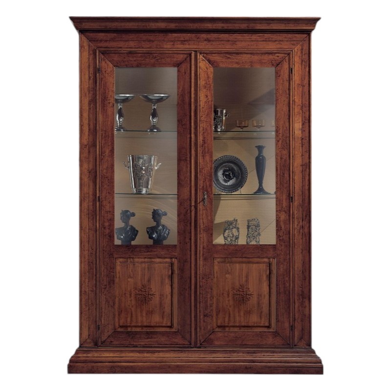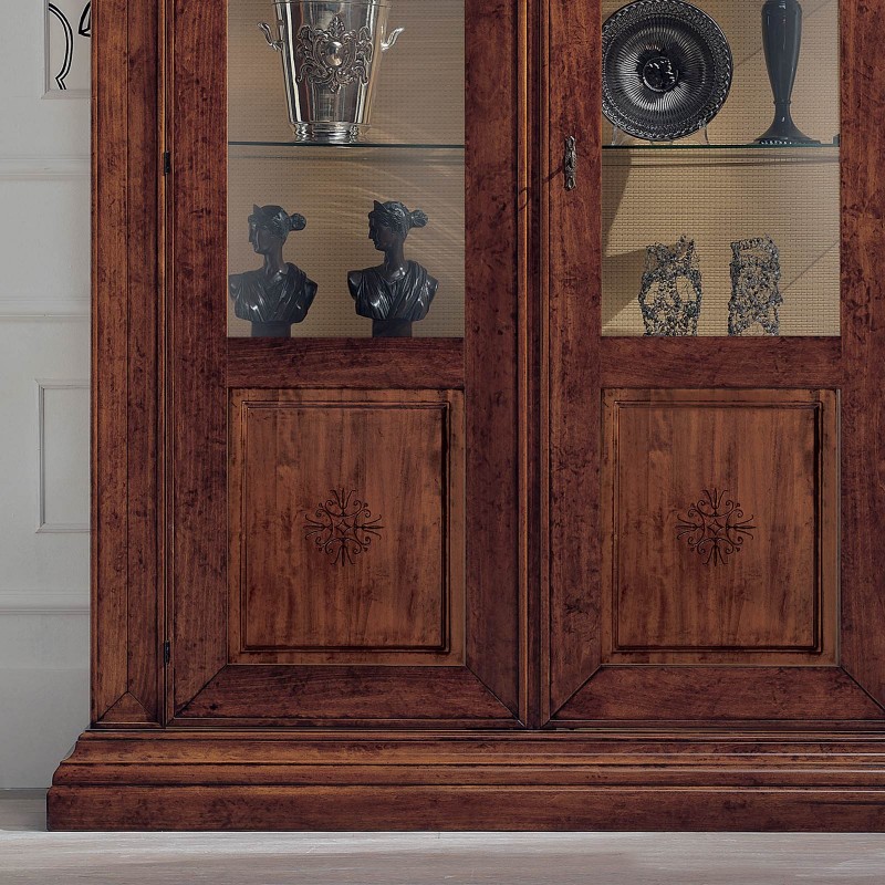 Vetrina classica 2 porte intarsio legno bassano con intagli 154X50x214