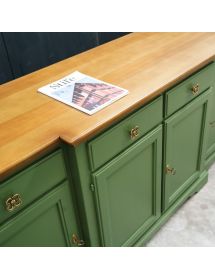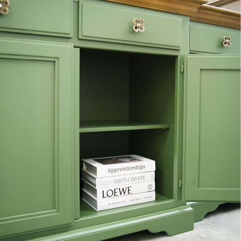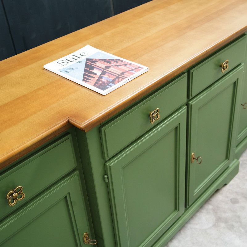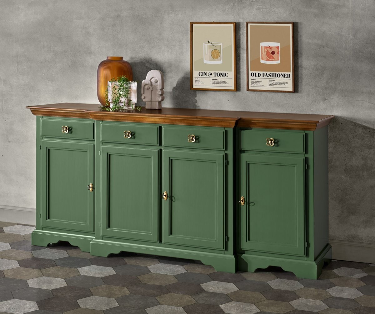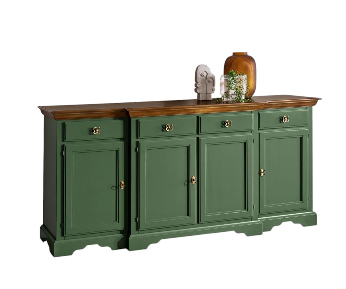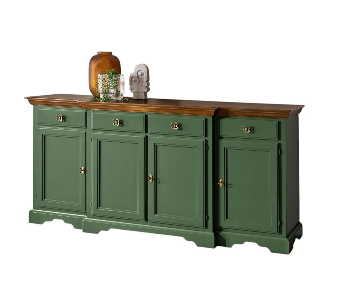 Madia credenza 4 porte 4 cassetti legno shabby verde e noce 200x45x93