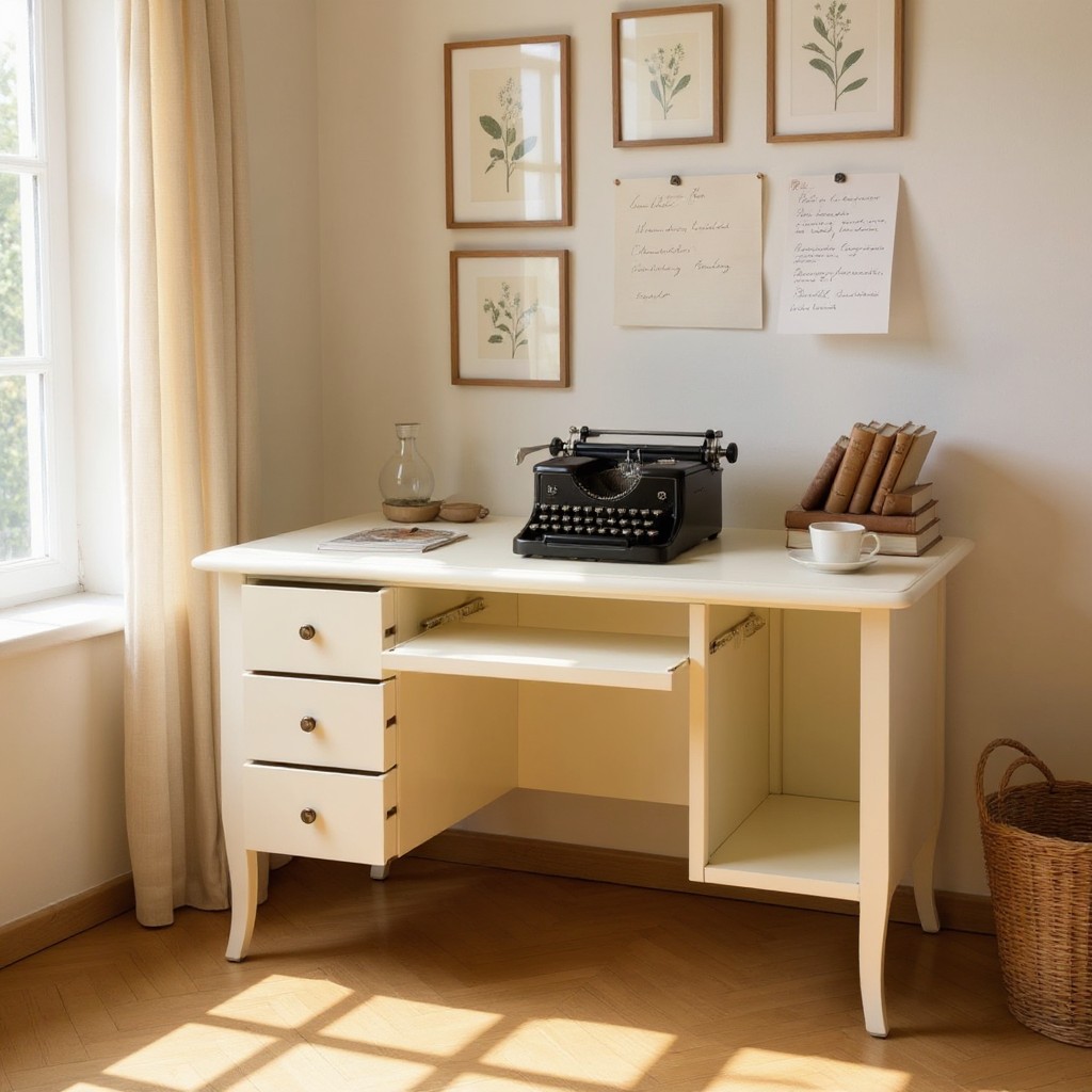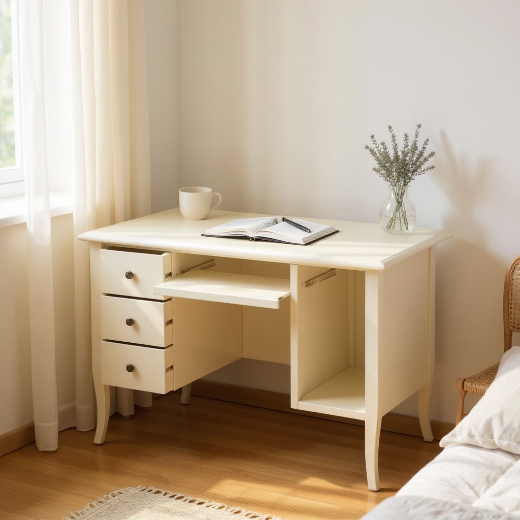 Scrivania porta computer arte povera legno avorio opaco 130x75x81