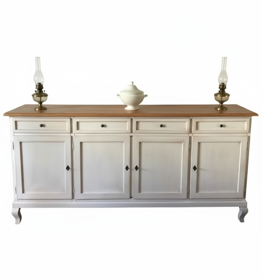 Madia credenza 4 porte legno shabby bianco anticato/naturale 205x45x98