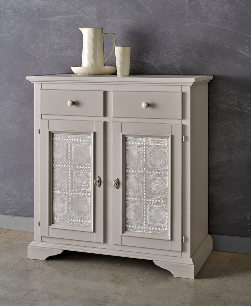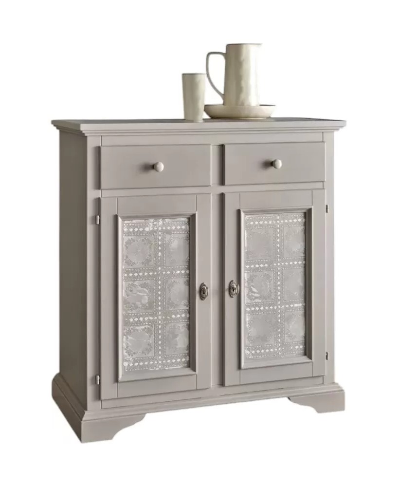 Credenza 2 Ante 2 cassetti shabby legno massello tortora decorata 90X40X94