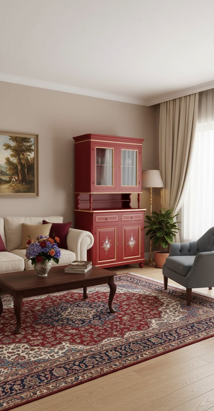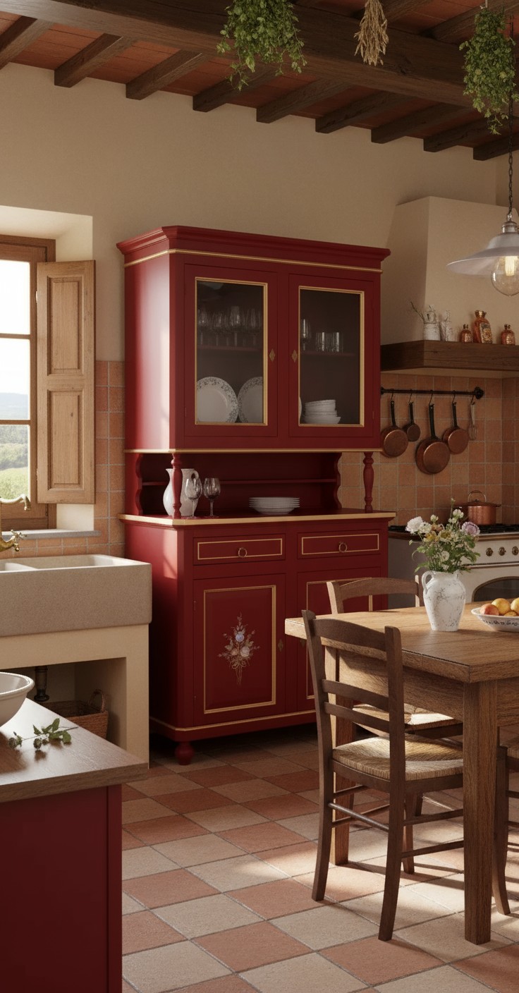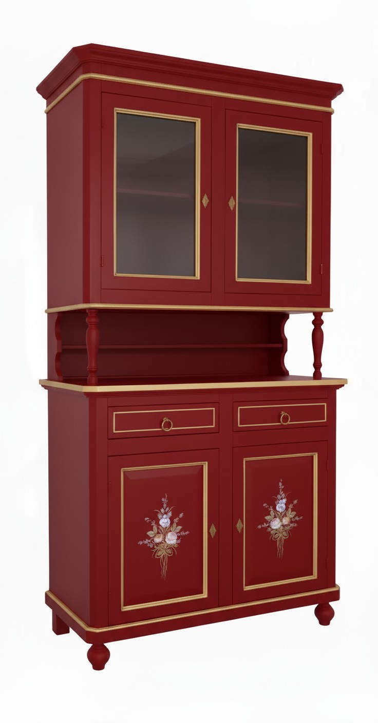 Cristalliera 2 porte shabby legno rosso decorata filo oro 104x43x208