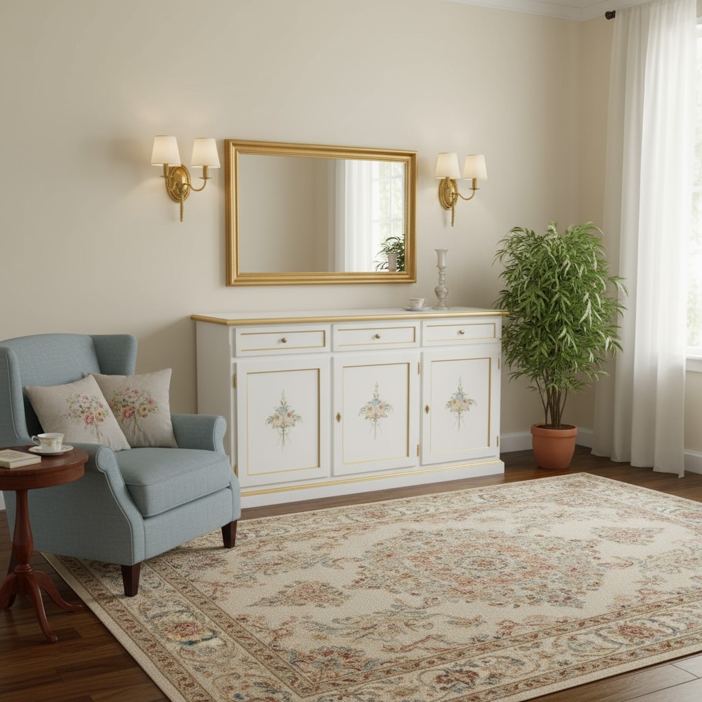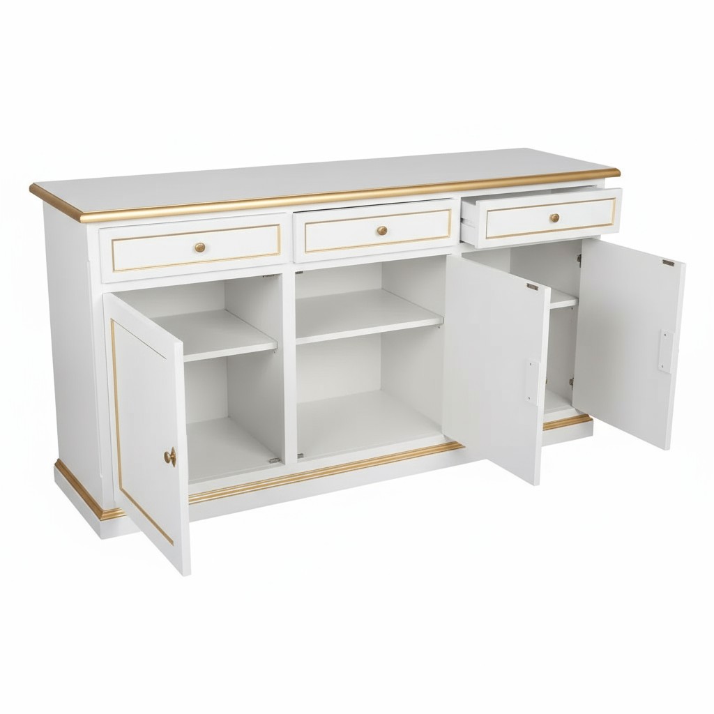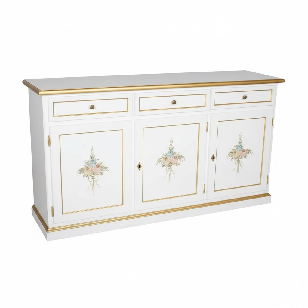Madia Credenza 3 Ante Legno shabby bianco Decorata Filo oro 156x42x86