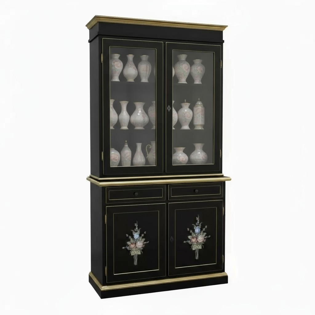 Cristalliera 2 porte shabby legno nero decorata filo oro 105x42x206