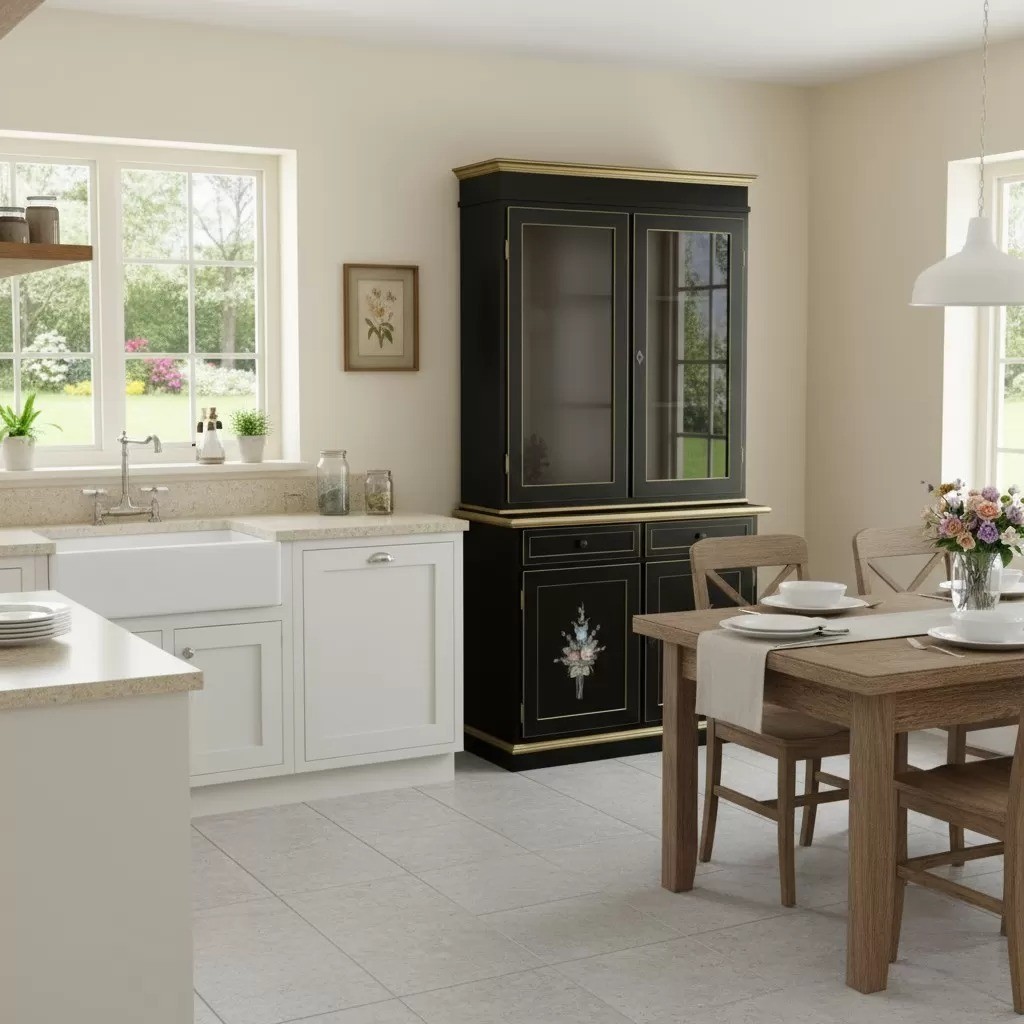 Cristalliera in stile shabby adatta per esporre i vostri oggetti preferiti risaltando tutto quanto esposto sui ripiani. Realizzata con uno stile classico per aggiungere un tocco di classe retrò nella zona giorno o in taverna. Elemento d' arredo funzionale e spazioso che non passerà inosservato dagli ospiti all' interno della casa .