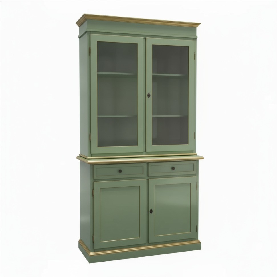Cristalliera 2 porte shabby legno verde salvia filo oro 105x42x206