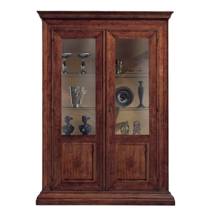 Vetrina classica 2 porte legno intagliato noce bassano 154X50X214