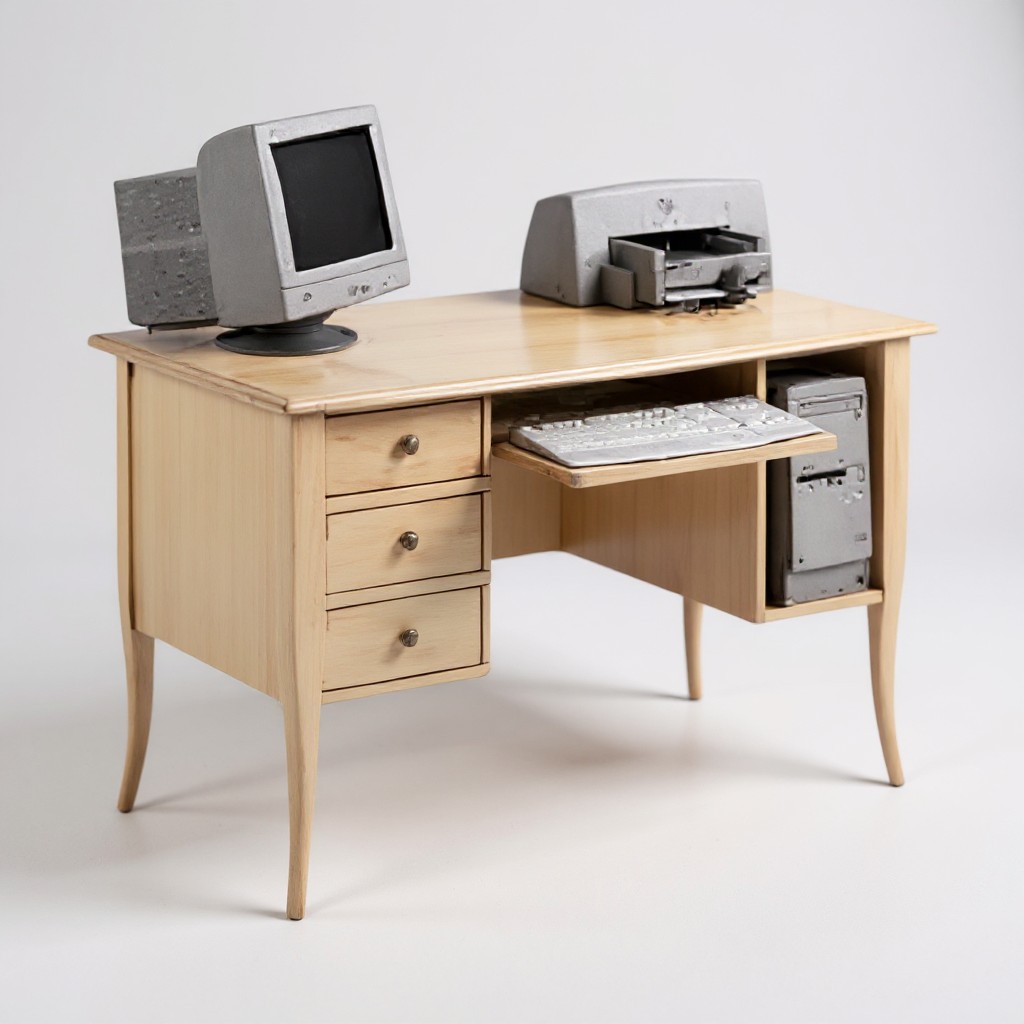 Bellissima scrivania in legno chiaro con finitura avorio patinato, perfetta per chi desidera unire eleganza classica e praticità quotidiana.