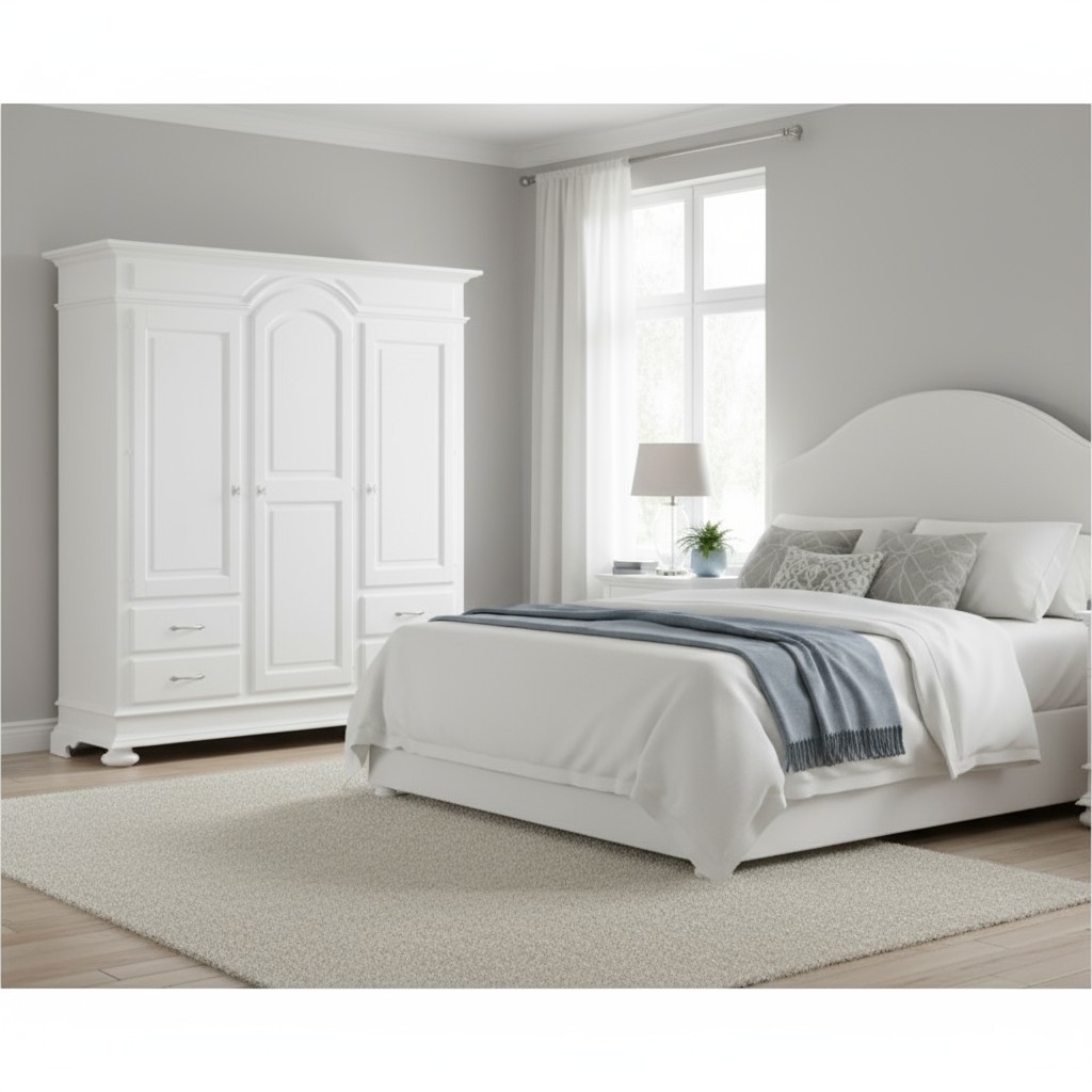 ARMADIO 3 PORTE 4 CASSETTI LEGNO SHABBY BIANCO 184X60X223 (2206)