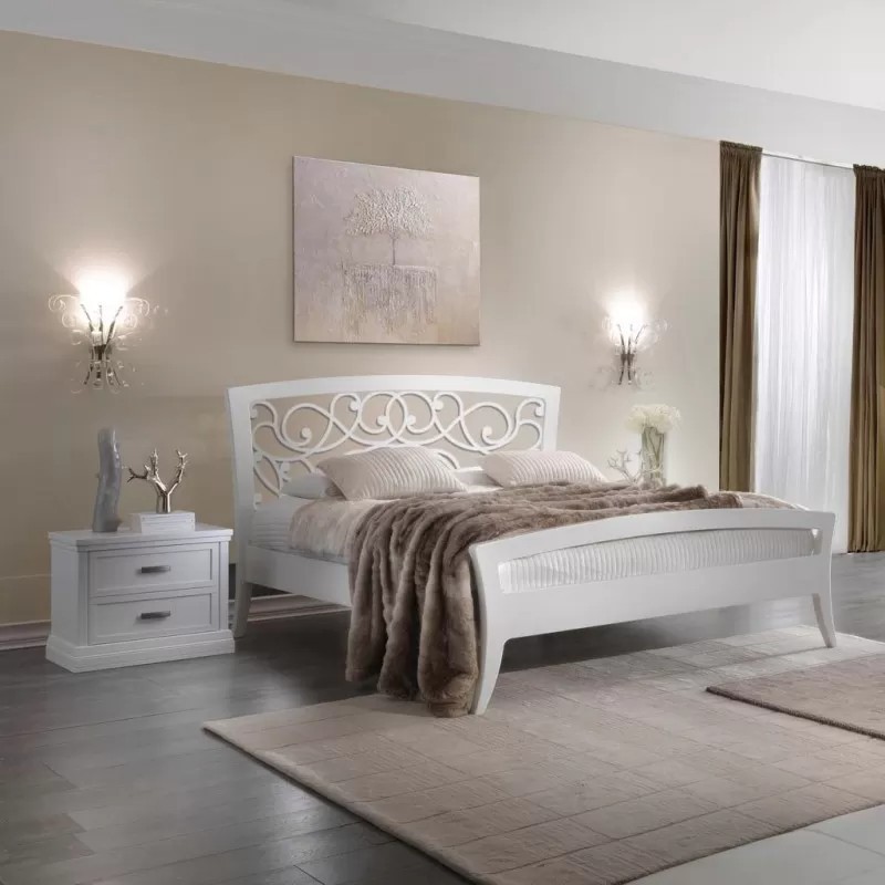 Gruppo 1 cassettiera 2 comodini classici legno shabby bianco