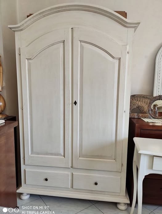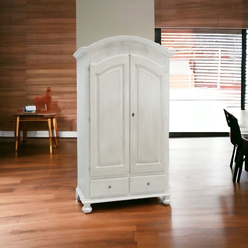 Armadio shabby 2 porte legno bianco anticato 125x61x200