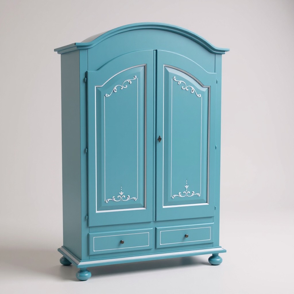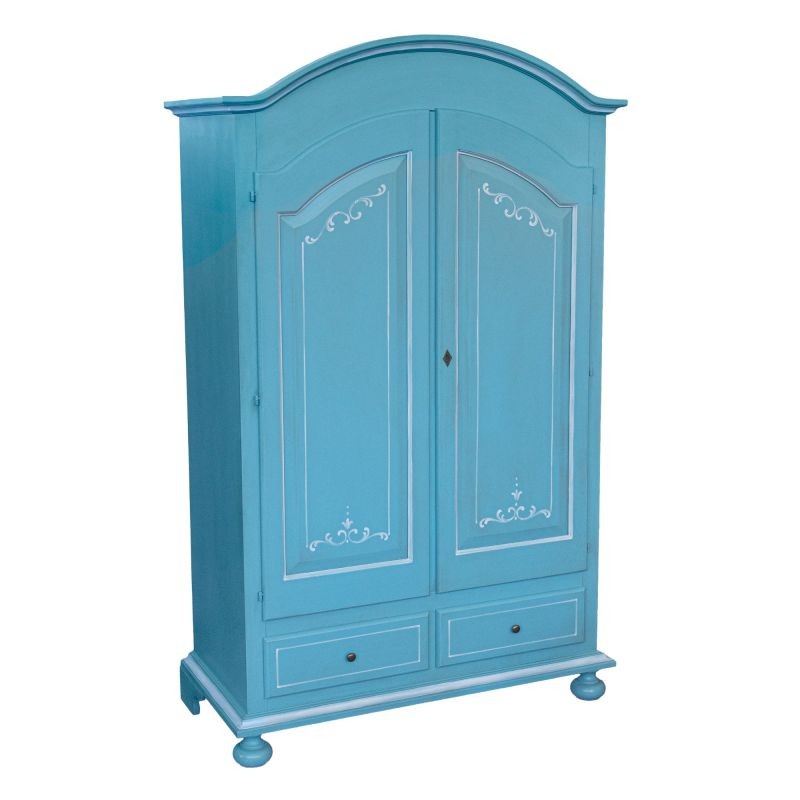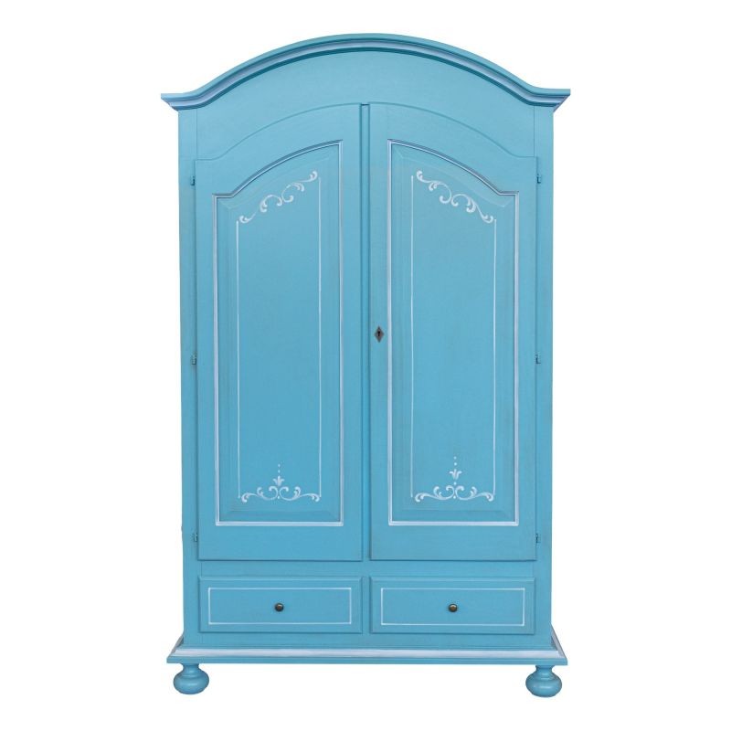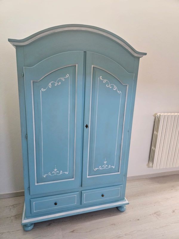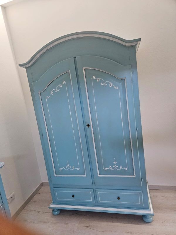 Armadio shabby chic legno decorato azzurro anticato 125x60x200