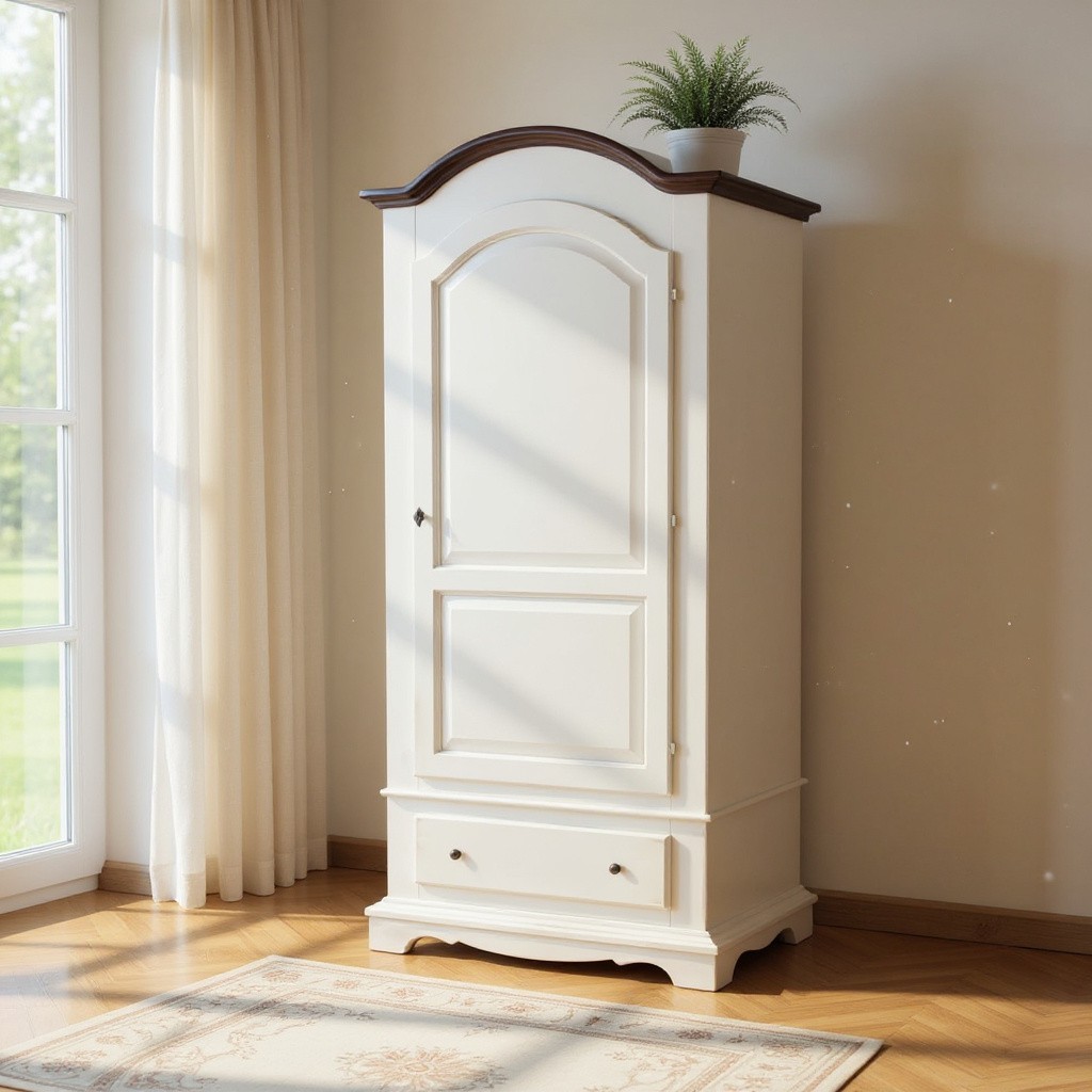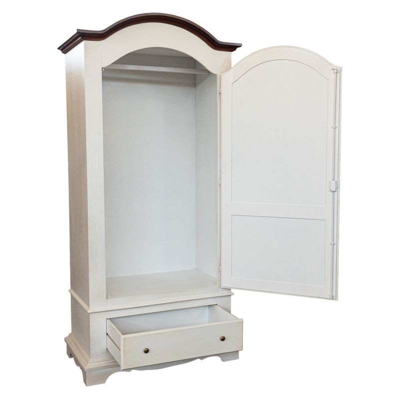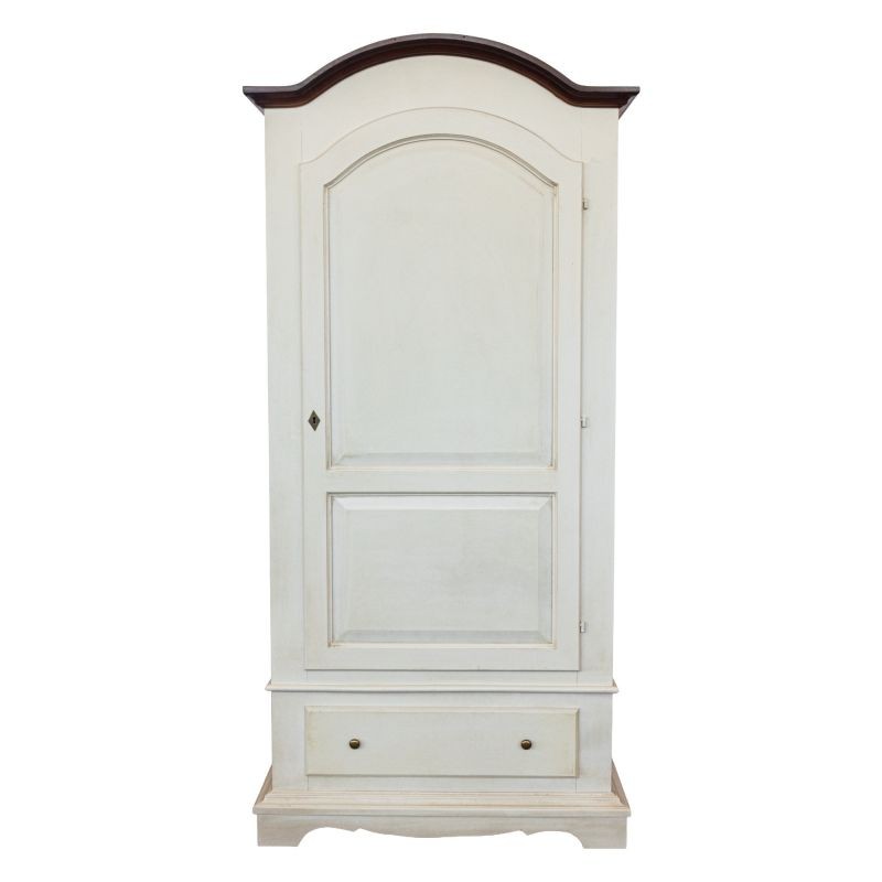 Armadio 1 porta legno shabby bianco invecchiato filo noce 96x56x196