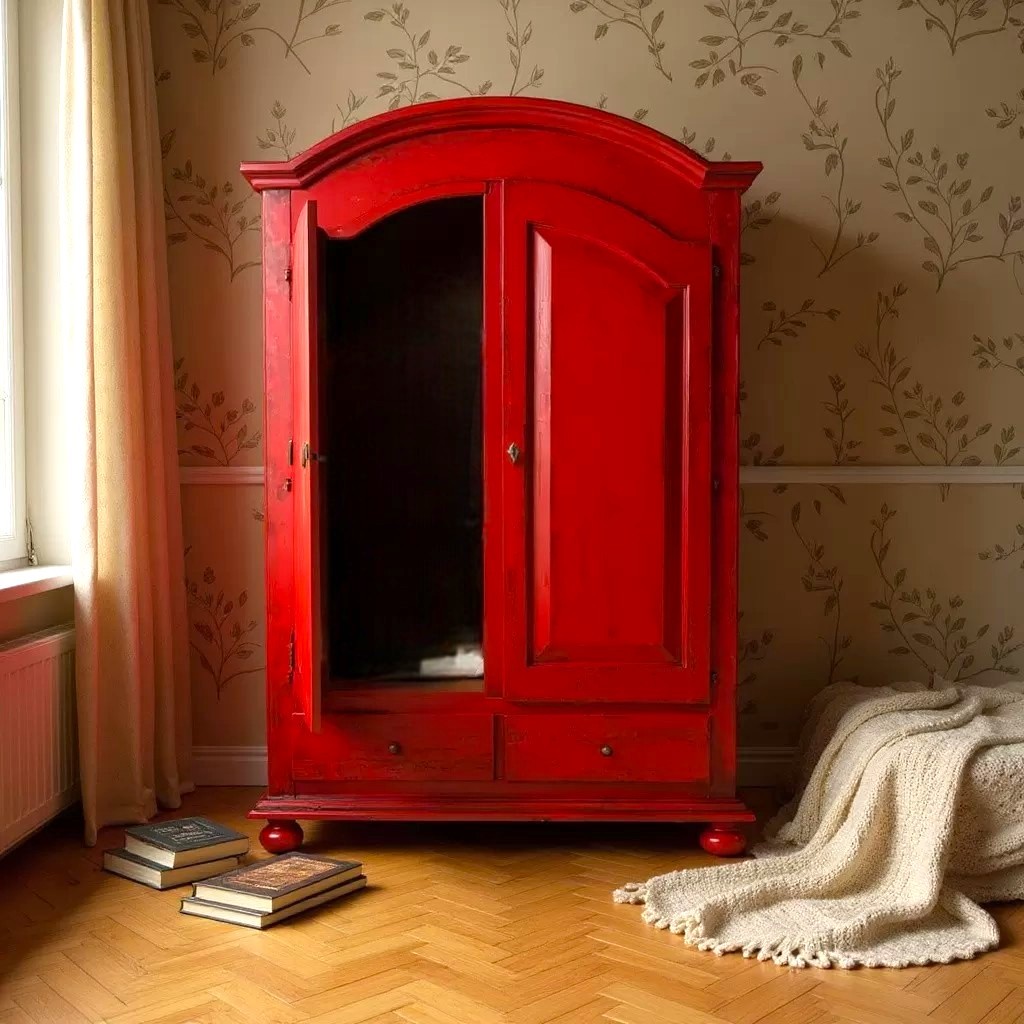 ARMADIO 2 PORTE LEGNO SHABBY ROSSO ANTICATO 125X61X200