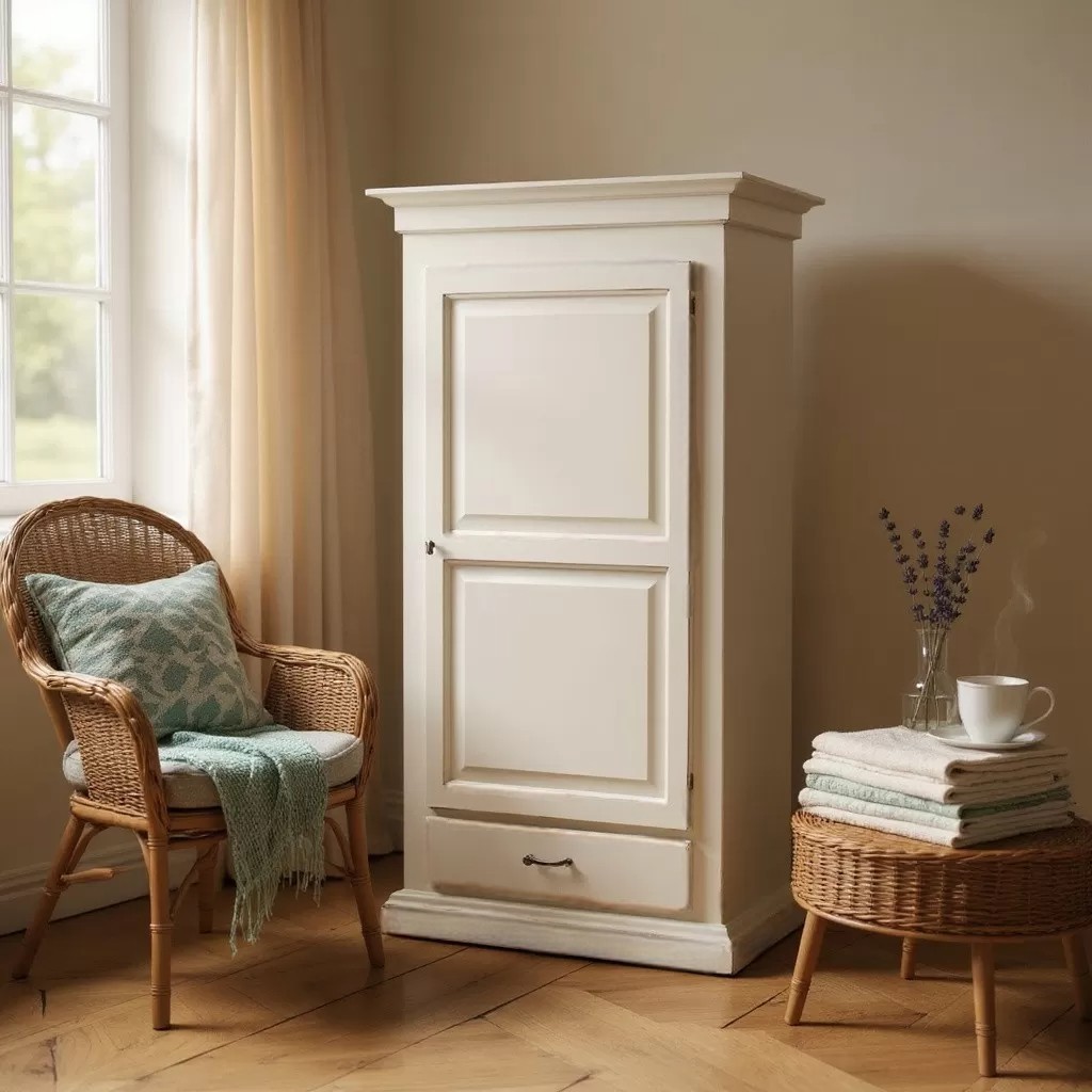 Cerchi un armadio compatto, elegante e versatile? Questo armadio 1 anta e 1 cassetto in stile arte povera laccato bianco è la scelta ideale per chi desidera ottimizzare anche gli spazi più piccoli con un arredo snello e funzionale.