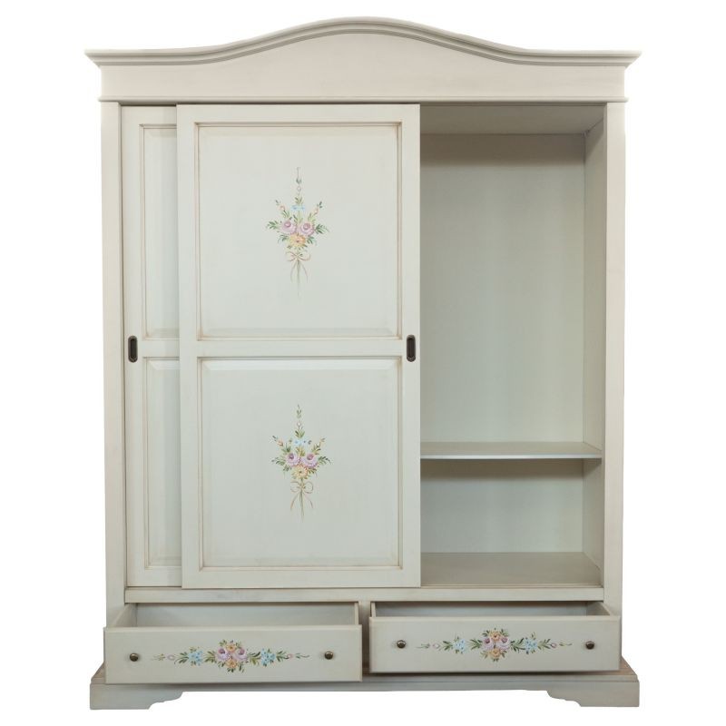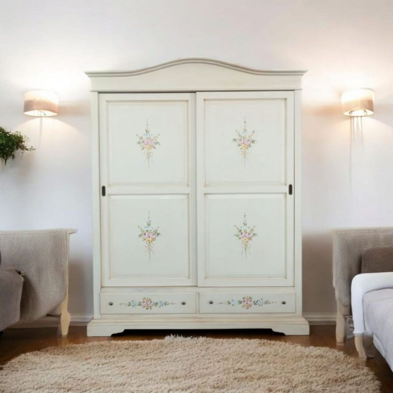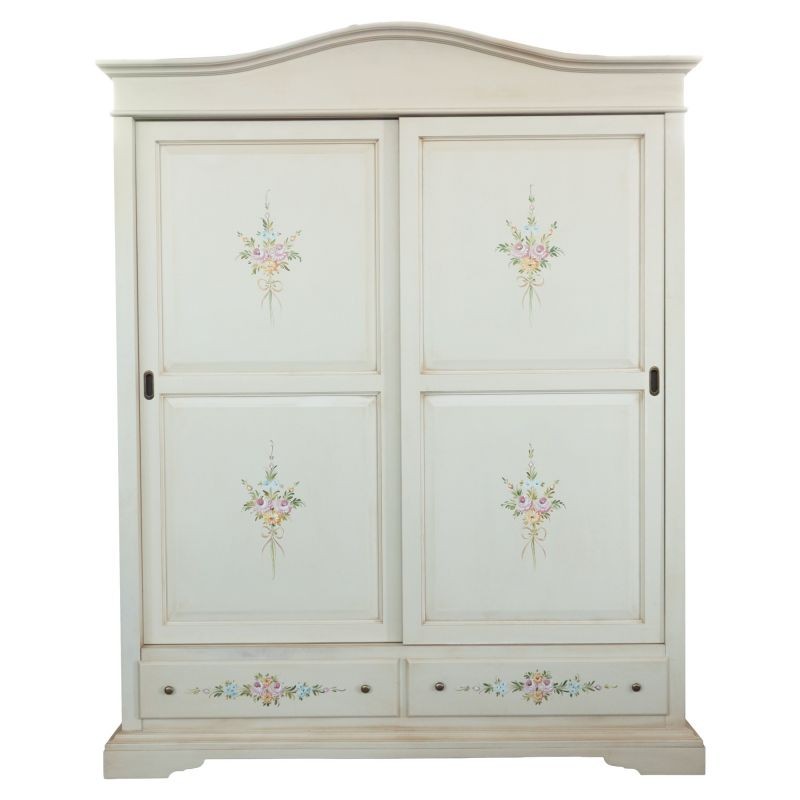 Armadio 2 ante scorrevoli legno shabby bianco anticato decori 180X67X225