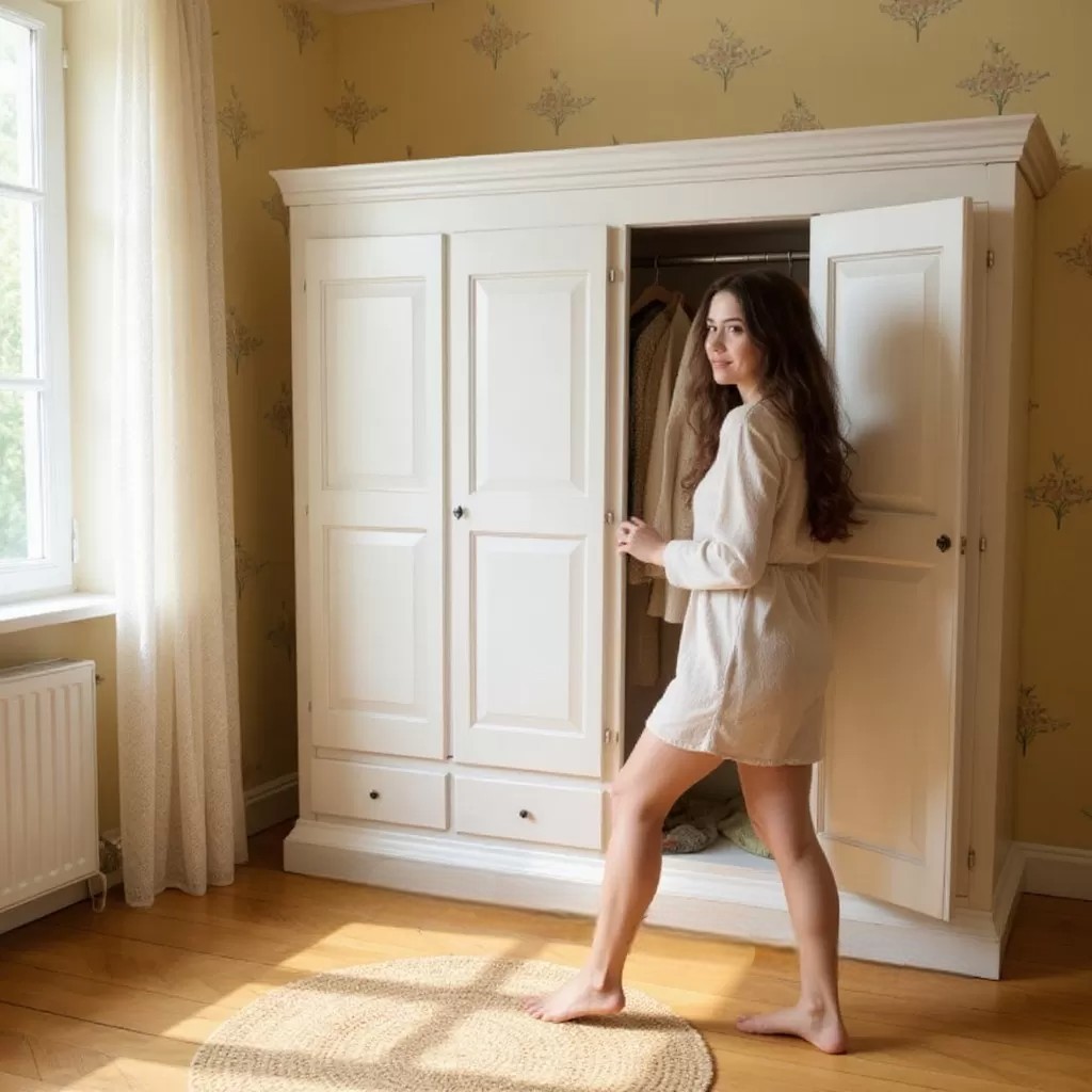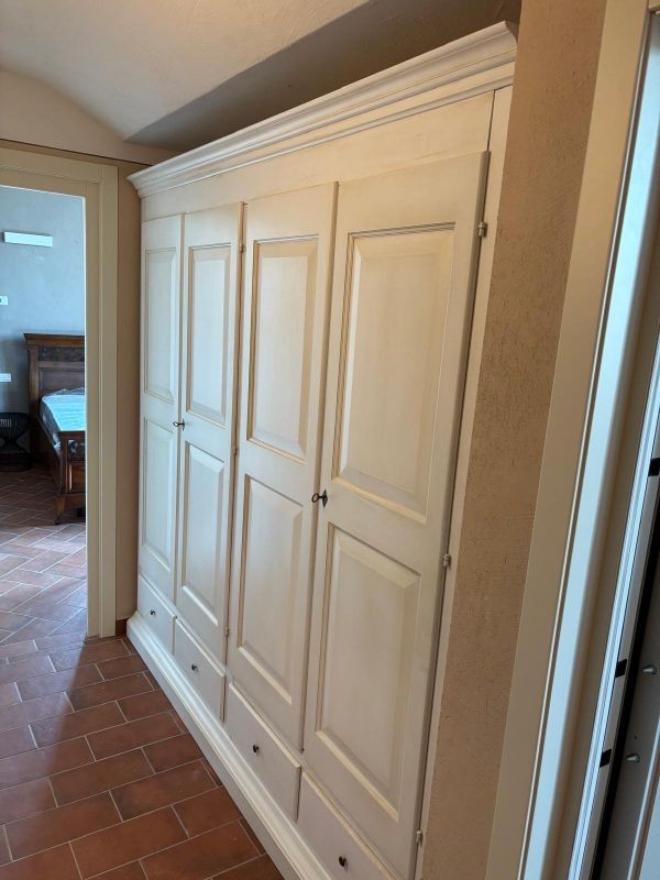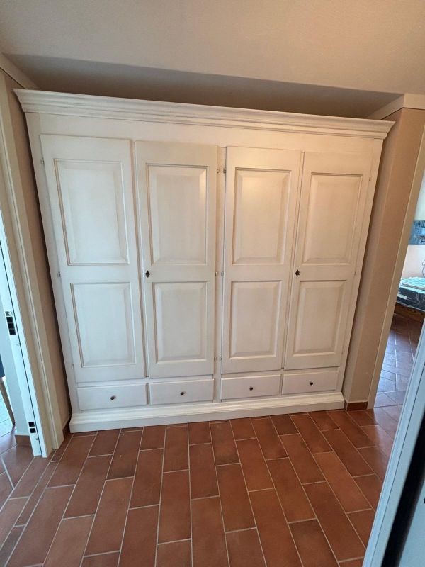 Armadio 4 porte legno shabby bianco anticato 234x61x221