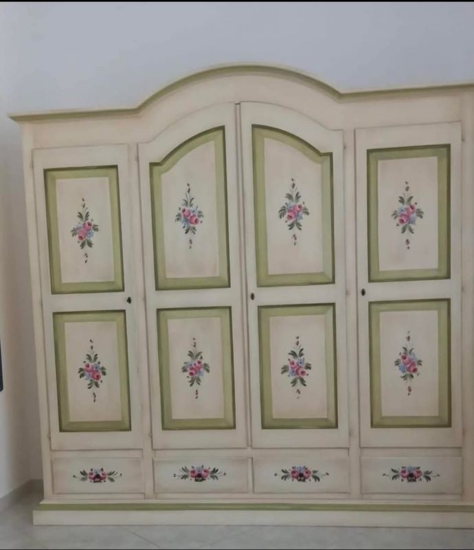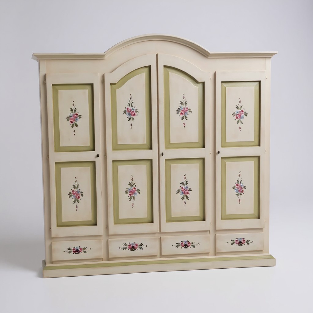 Armadio shabby 4 porte legno avorio anticato decorato filo verde 234X60X230